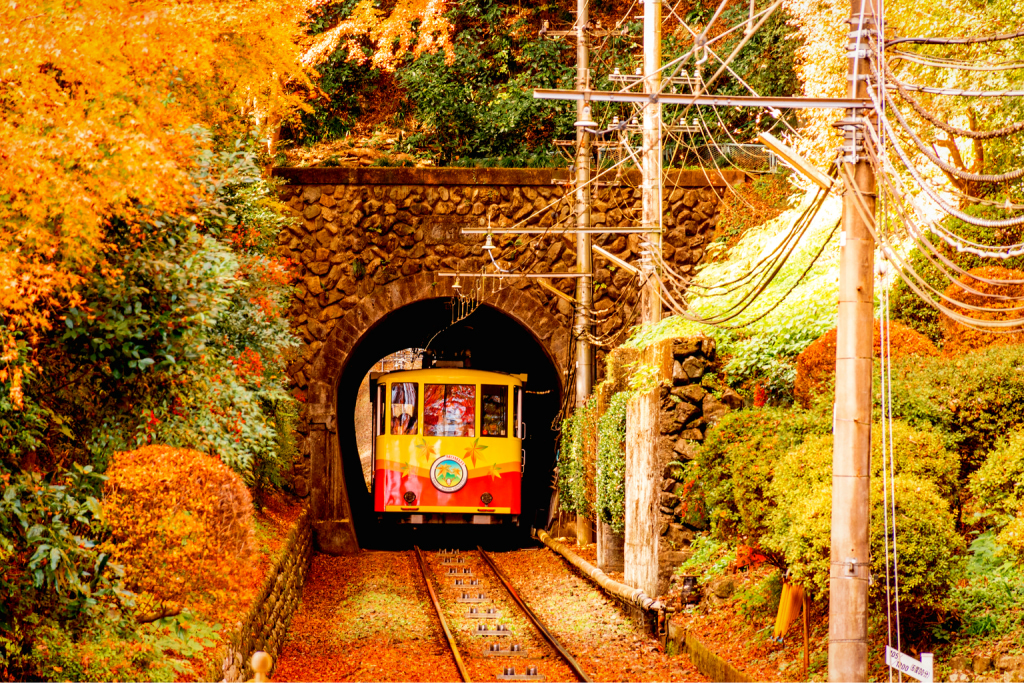 Whether you want the view from a train or of one as it travels through the shades of red, orange and yellow, these choo-choo trains give great views. Mount Takao is popular with hikers year-round, but autumn in Japan is when it really comes to life. The mountain’s cable car is a great way to catch the brightly colored leaves up close as you make your way up. Even better, find a spot with a view of the cable car itself to add an extra dimension to your photos.