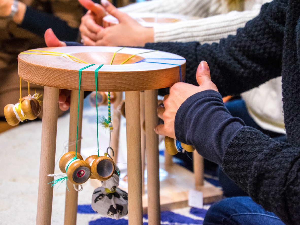 Wood has extraordinary moisture-retention properties, making it the perfect “mini vase” in which to place small flowers and plant cut-offs. In this workshop, wood shavings serve as vases, but you can also break them off into smaller pieces or tie them into knots to make interesting bases. Because they retain water so well, they also work as an all-natural humidifier. Although at first glance it may seem quite simplistic – placing a flower in a curled wood shaving on a plate – there is a deeper meaning to be found in this creative activity. www.uzu-hanaemi.com