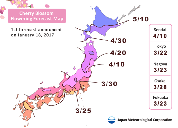The Japan Meteorological Corporation (JMC) has just released its annual Cherry Blossom Flowering Forecast Map. And you know what that means: it’s time to start planning your hanami holiday.
