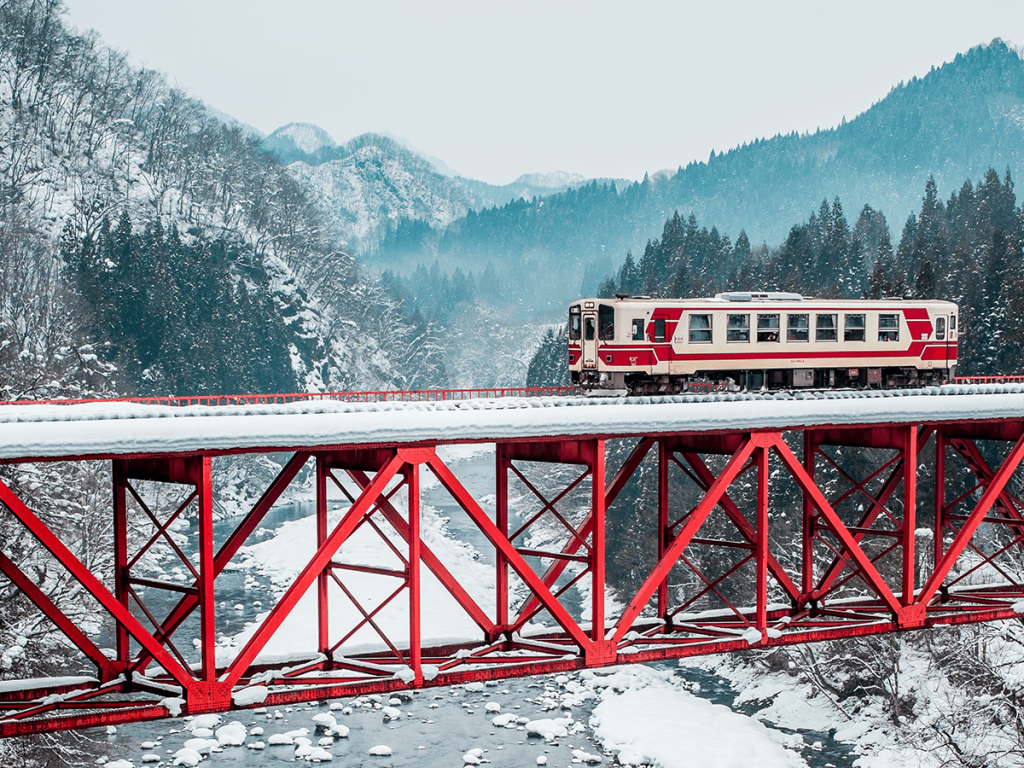 One of the best ways to get a look at Akita’s sprawling sights is through the windows of a sightseeing train. The Resort Shirakami, which operates between Aomori and Akita, runs along the coastline and delivers breathtaking views of landmarks like Shirakami Sanchi. If that isn’t enough, there’s also an onboard bar, art gallery and even live performances. If you’re traveling in winter, don’t miss the Akita Nairiku Line, which lets you leisurely take in the snowscapes while passing through 20 tunnels and – count ’em – 322 bridges. Finally, don’t miss the adorable 23-kilometer Chokai Sanroku Line, the one and only train operated by Yuri Kogen Railway.