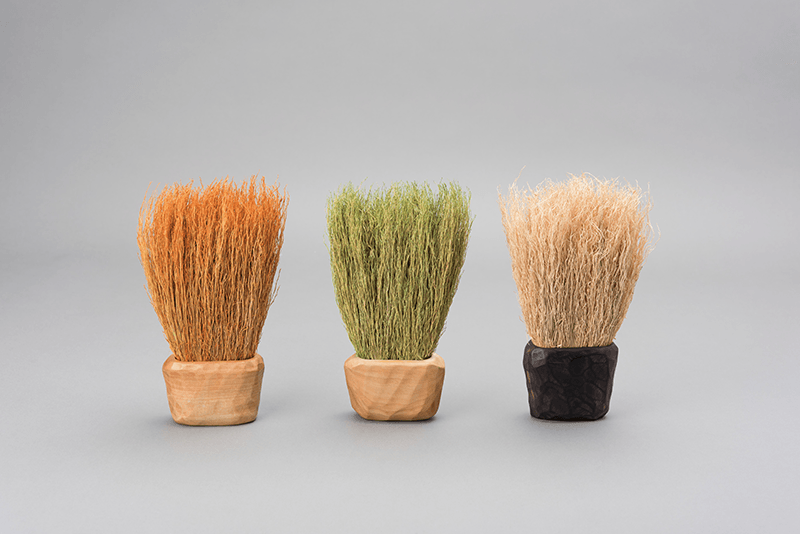 As Hiroyuki Hashino, owner and founder of Akita Artforme explains, when products are made with careful consideration for their materials, shape, and function, more beautiful and timeless products are the result. One example of this is the company’s wood-handled brush, which combines both form and function in an item that is attractive enough to serve as interior decoration and handy enough to use every day. Its bristles are made from sorghum, and are tough enough to sweep up clogged dust or pet hair on tatami, wood, or vinyl flooring, but gentle enough to brush a delicate fabric like cashmere. The handle of the brush is carved to fit snugly in the hand, and the wood comes in three stylish colors: natural, green, and orange.
