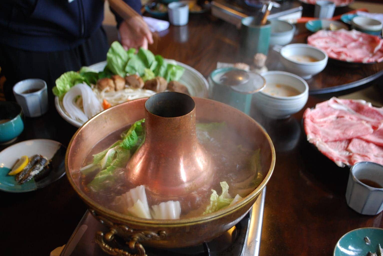 Our appetites officially piqued, we happily clambered up the charming wooden staircase to the second floor of this Showa-era shabu shabu (hot pot) restaurant. The room was soon filled with the sounds of delicate swishing – along with hungry slurping – as our chopsticks guided slices of soft wagyu beef and piles of local vegetables into copper pots filled with boiling water, which we then dipped into a bowl of delectable gomajoyu (sesame soy sauce) and enjoyed along with some chilled sake.