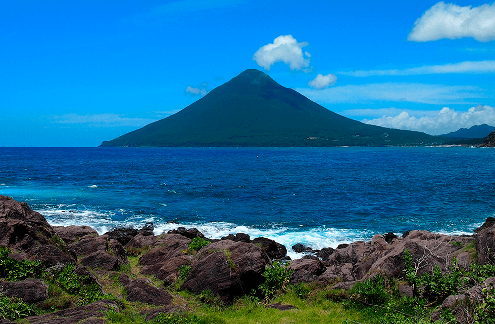 Considered to be the “Satsuma Fuji,” Mt. Kaimon rises prominently in the midst of Kagoshima’s “healthy lands,” where the soil is richest for farming, flowers grow wild, and the hot springs are the clearest and freshest. Although it’s considered an active volcano, the last sign of any activity was an emission of light volcanic gas in 2000, and before that the last great eruption was in 885. The mountain is close to Ryugu Shrine, and you can hike to its 924m-high summit in a few hours.