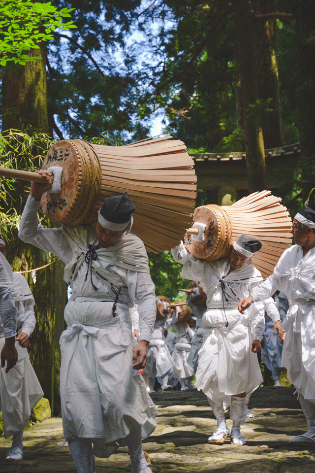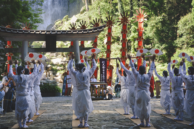 Nachi no Ogi celebrates life, the afterlife, and everything in between. The festival connects the old site of the shrine, built 1,700 years ago, to the smaller and newer Hiro Shrine. The site has been renovated dozens of times due to storms, slides, and fires. Today the festival is held every July 14 from ten in the morning until three in the afternoon. These centuries-old traditions are still practiced: they are meant to unite the gods of the Kii Mountains and bring good health to the living, bountiful crops to the hungry, and a blessed eternity for those who have passed.