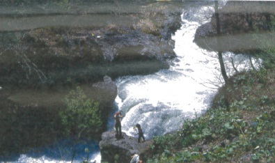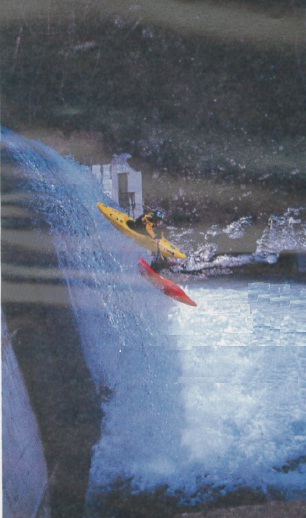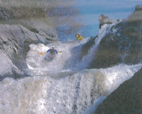 Southwick rappelled down onto a steep ledge right at the lip of the drop to set up safety, while young Pat pioneered the route. We all ran the drop and continued down the creek The canyon tightened below, and then dumped over another 20-ft. dam. We took out just below this drop and headed back to base camp to study the topographical maps for more steep creeks.