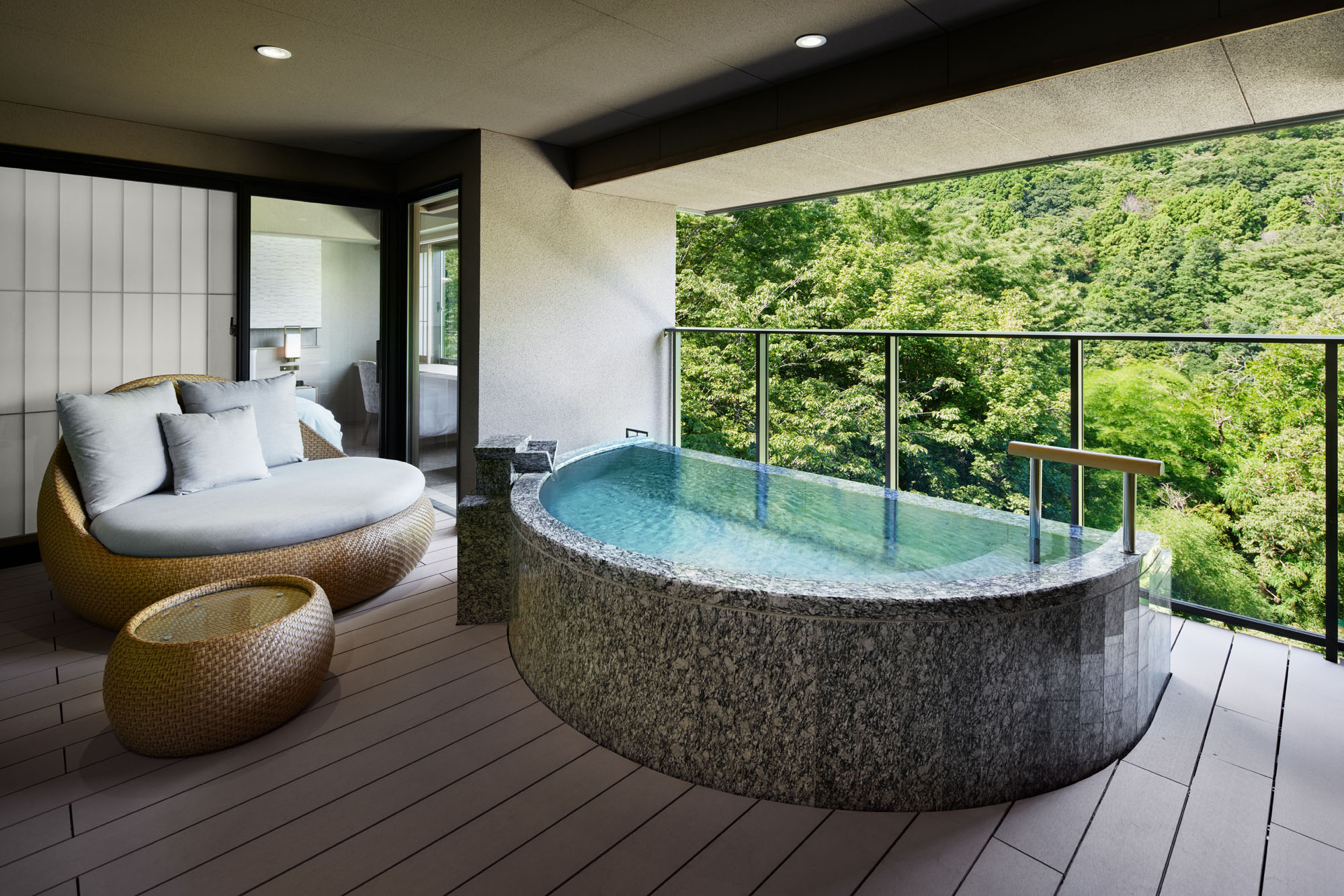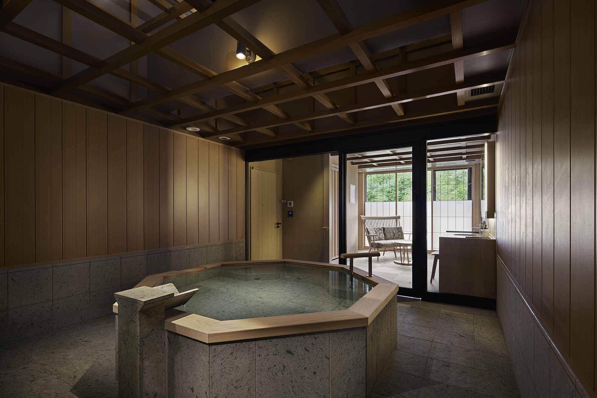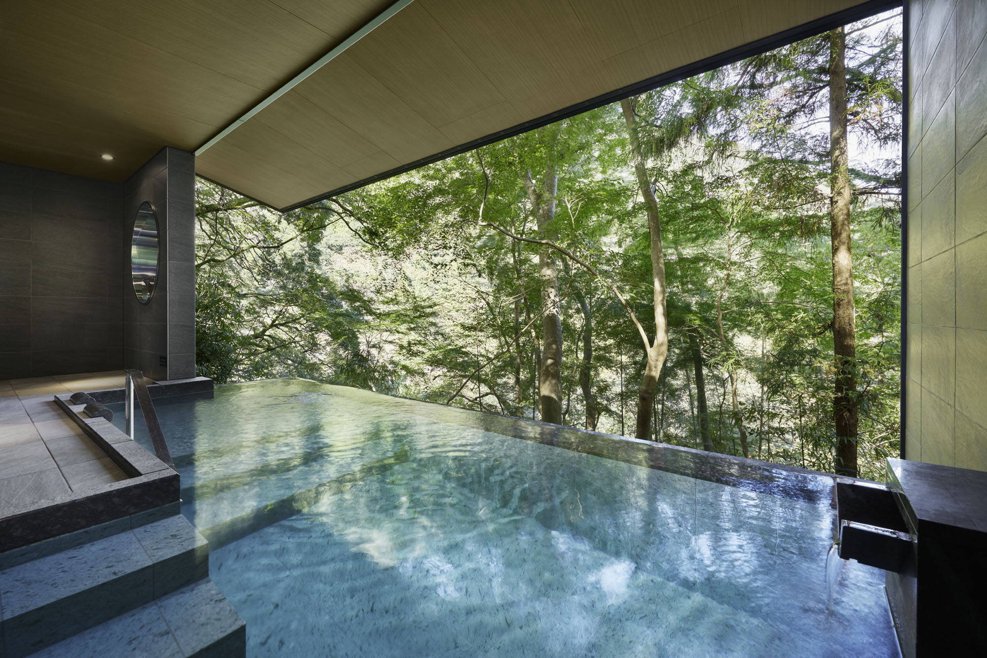 Hatsuhana has one large bath — beware, tattooed friends, this is not for us — and four private onsen. There is even a hot spring bath in every room, so guests are truly spoiled for choice. Each private onsen has its own distinct charm, be it the view of a secluded forest or barrier-free bathing. It means guests needn’t leave the peaceful hotel hideaway to experience different hot springs.