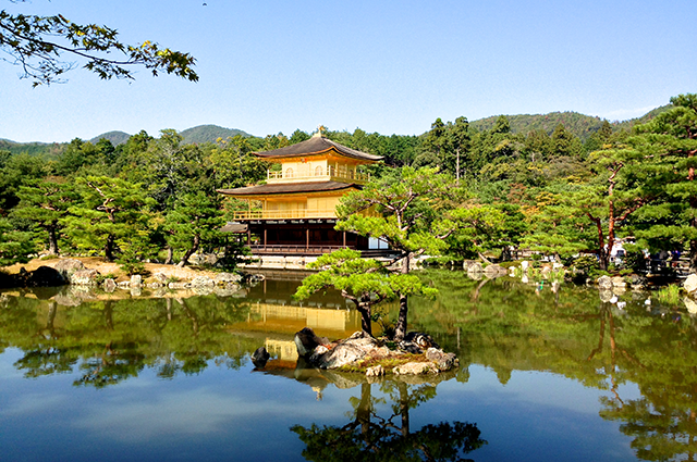 Kinkaku-ji Temple, also known as the Golden Pavilion, is a beautiful, Zen temple covered in gold leaf and rich history. Admission is ¥400 to walk around the temple and garden. The surrounding areas have souvenir shops and food carts selling sweets and drinks.