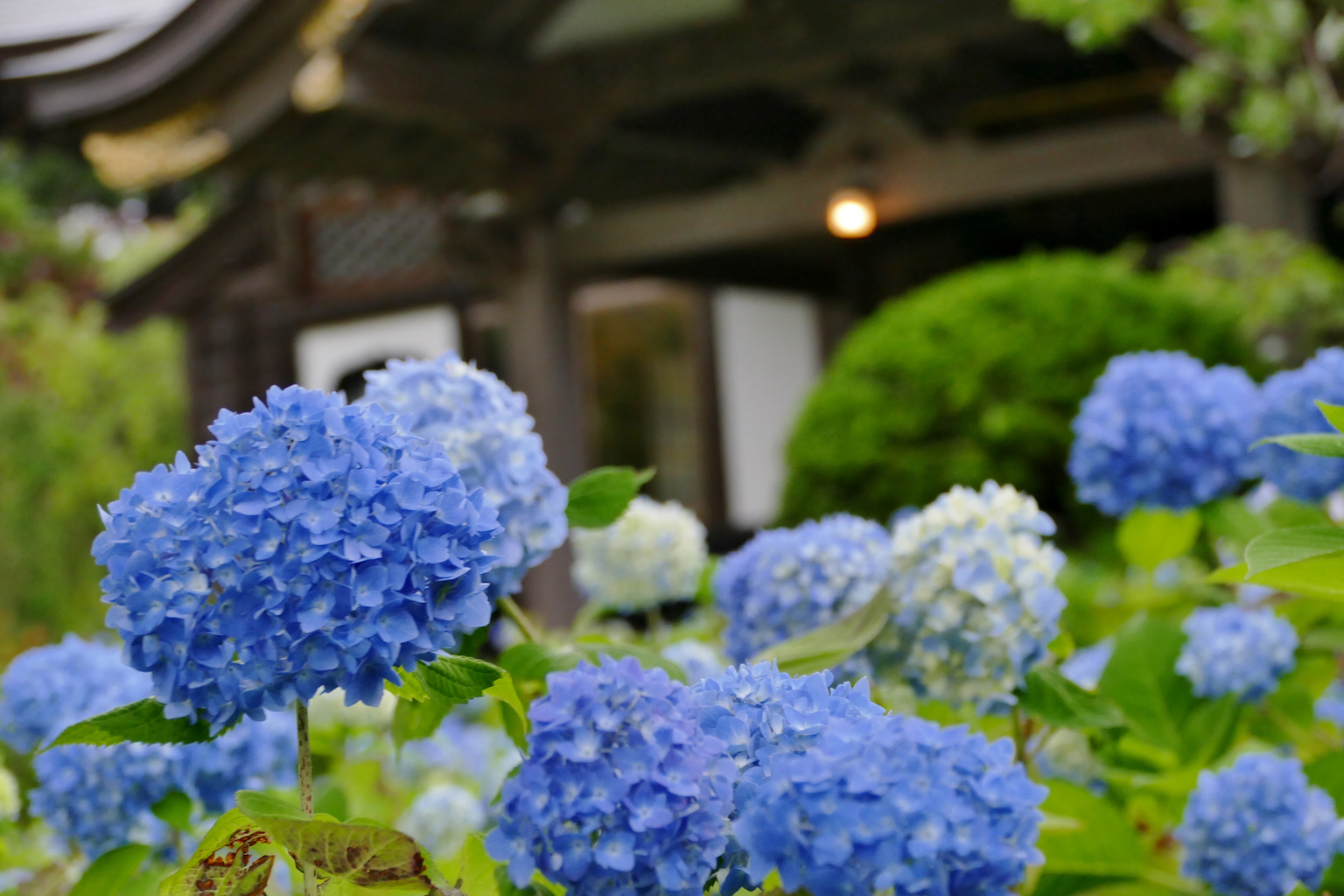 The temple’s deputy head priest has spent more than 15 years cultivating these hydrangeas, counting more than 1,500, all derived from a single original plant. This special variety produces a larger number of petals due to the priest’s unique cultivation method, and when in full bloom, the flower is dyed vivid blue. The flowers spread out like a thick blue carpet around the temple, and this ethereal shade of blue holds special meaning to the locals.