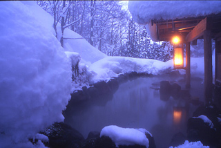 Once the exclusive resort of Akita lords, the original, thatch-roofed Honjin house has been carefully preserved and is open to guests. According to local legend, a hunter discovered the hot spring when he saw a crane (tsuru) healing its wounded leg in the waters. Henceforth it became known as Tsurunoyu, the water of the crane. While its four baths each offer different restorative properties, the inn is best known for its milky white waters. The surrounding inns each have their own distinctive baths. One of the more remote is the hot spring Ganiba, with an outdoor bath surrounded by snow-covered virgin forest. A relaxing soak in one of the many baths and a night of refined comfort at any of Nyuto’s traditional inns is an ideal way to spend a frosty winter evening.