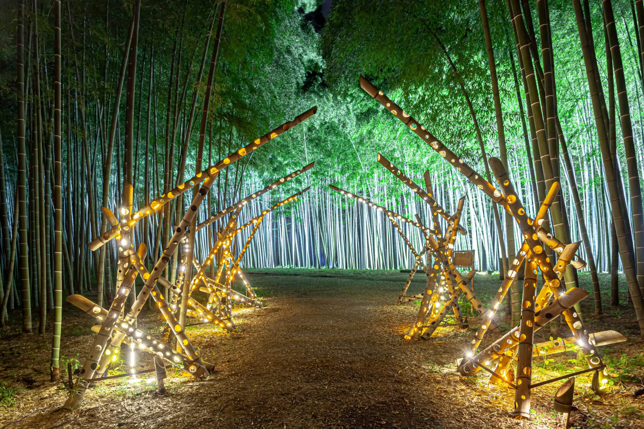 Bamboo features in a myriad of ways, from bamboo decorations to matcha served in bamboo cups. Have fun exploring and spotting all the bamboo accessories that are traditional crafts. In spring, you can also go digging for edible bamboo shoots, picking berries in summer and gathering chestnuts in autumn. In winter, the bamboo forests light up on weekends to create a fairytale-like scene.