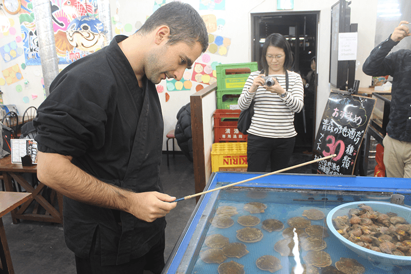 Finally, if you happen to be near Aomori Station and are looking for a unique dining experience, Hotate Goya offers a deal that may very well not exist outside of the city: Customers are given the chance to fish for the very scallops they will be dining upon. For a 500 yen entrance fee, you are given a fishing pole and three minutes to catch all of the scallops you can within the time limit. Anything you catch is then prepared for you as sushi, sashimi or grilled style. For those who do not wish to try their skill, a standard menu is also available.