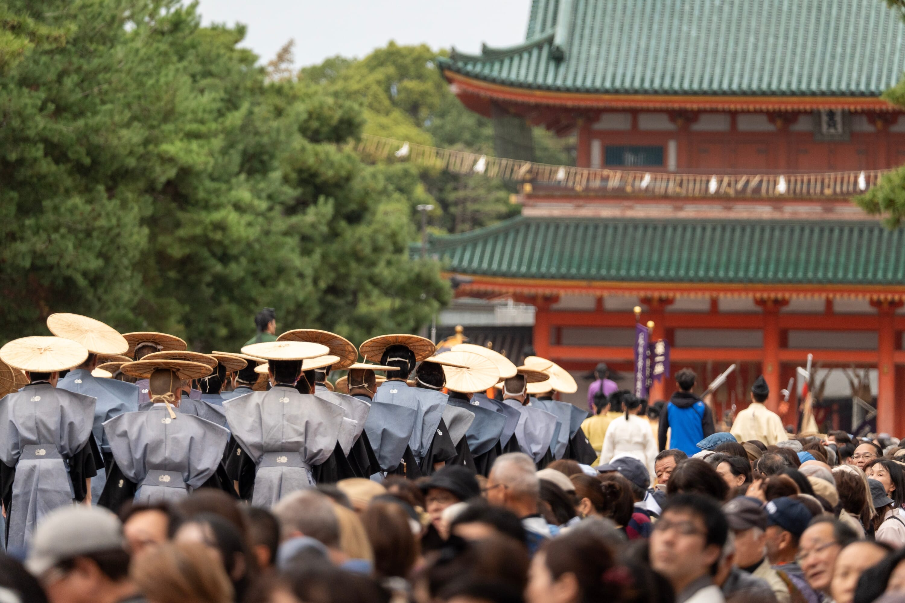 The Jidai Matsuri, or “Festival of the Ages,” is a major historical parade held every October 22 in Kyoto. It commemorates the city’s history, from the Enryaku period (782-806), through its founding as the imperial capital in 794 to the Meiji Restoration in 1868. The highlight is a two-kilometer-long procession featuring around 2,000 participants dressed in meticulously recreated period attire, moving in reverse chronological order.