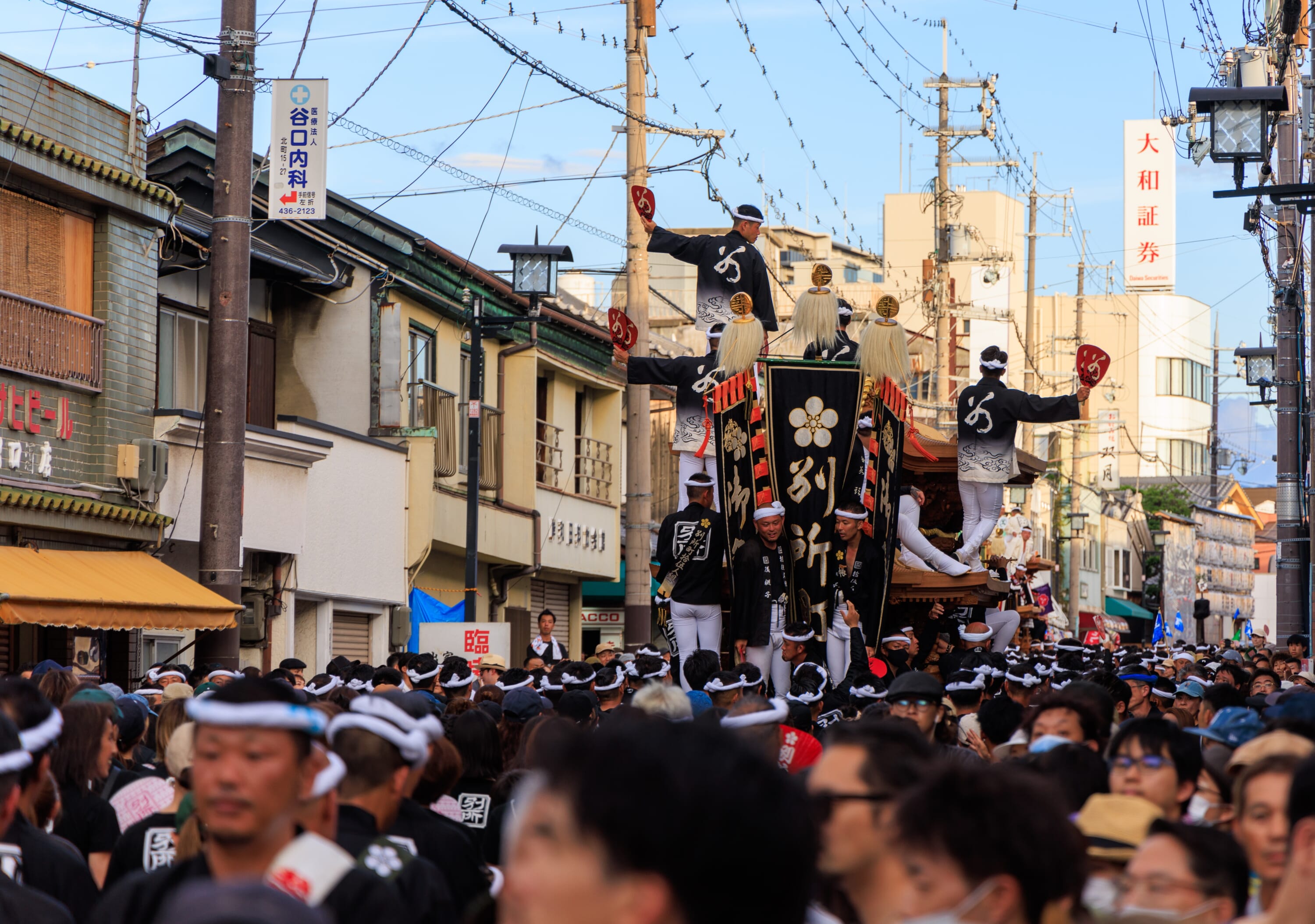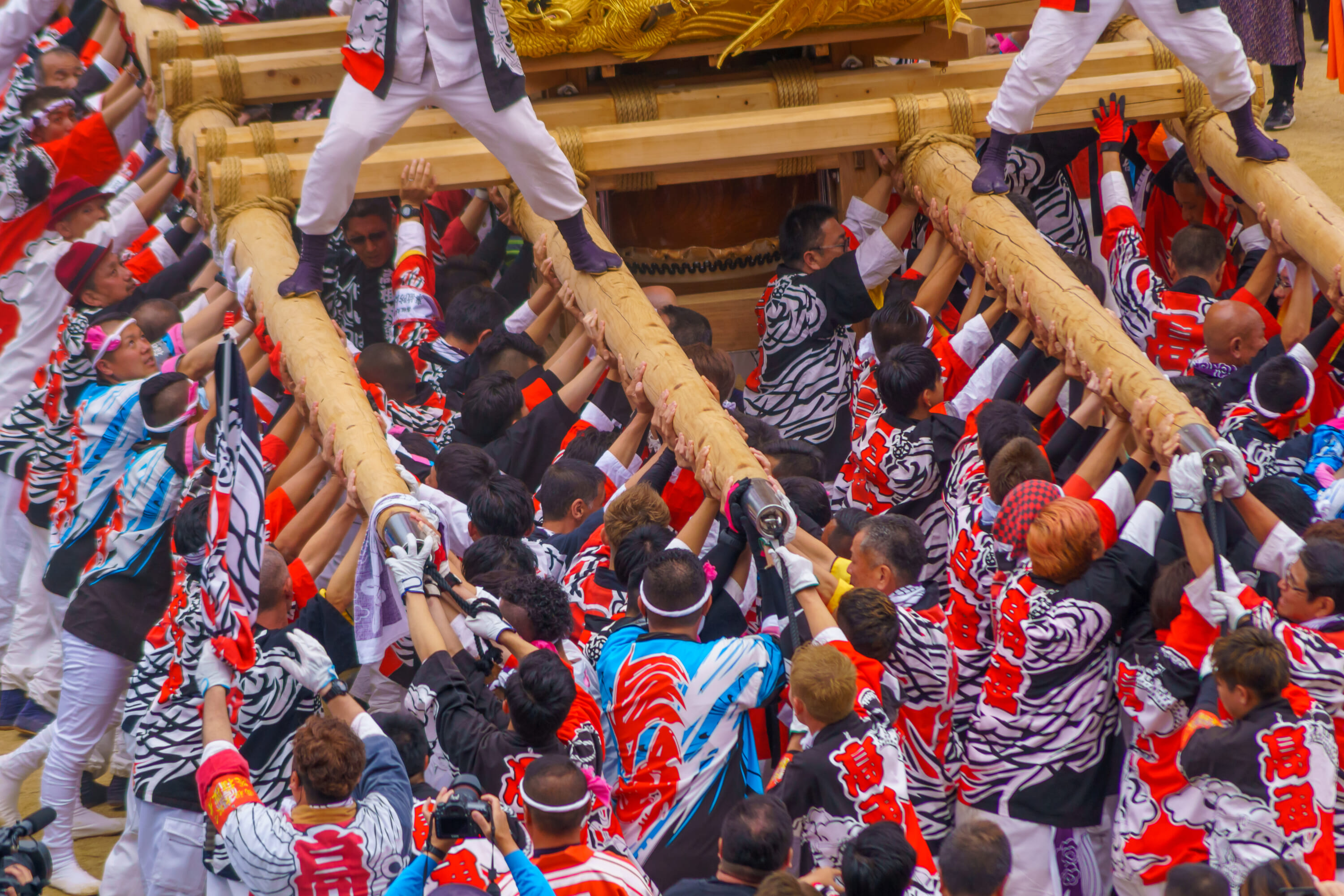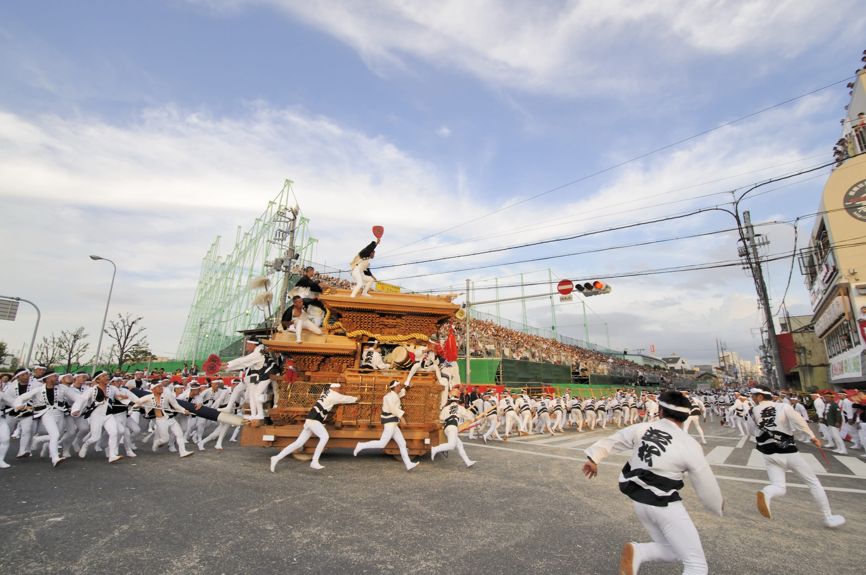 The main spectacle is the kakikurabe, a powerful contest where the teams compete to lift their floats as high as possible. The festival is also known for its intense and sometimes violent hachiawase or intentional collisions of the floats — a boisterous tradition that borders on dangerous.