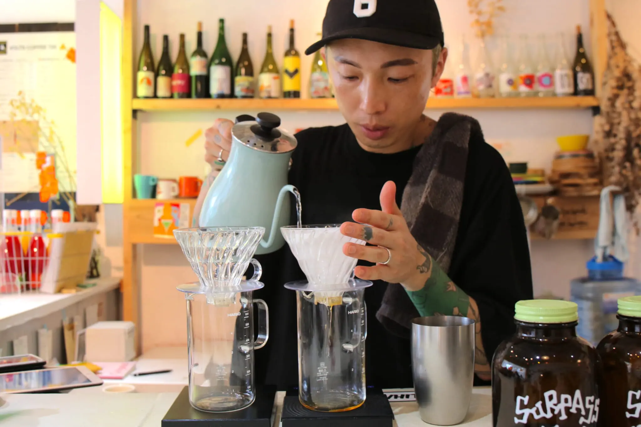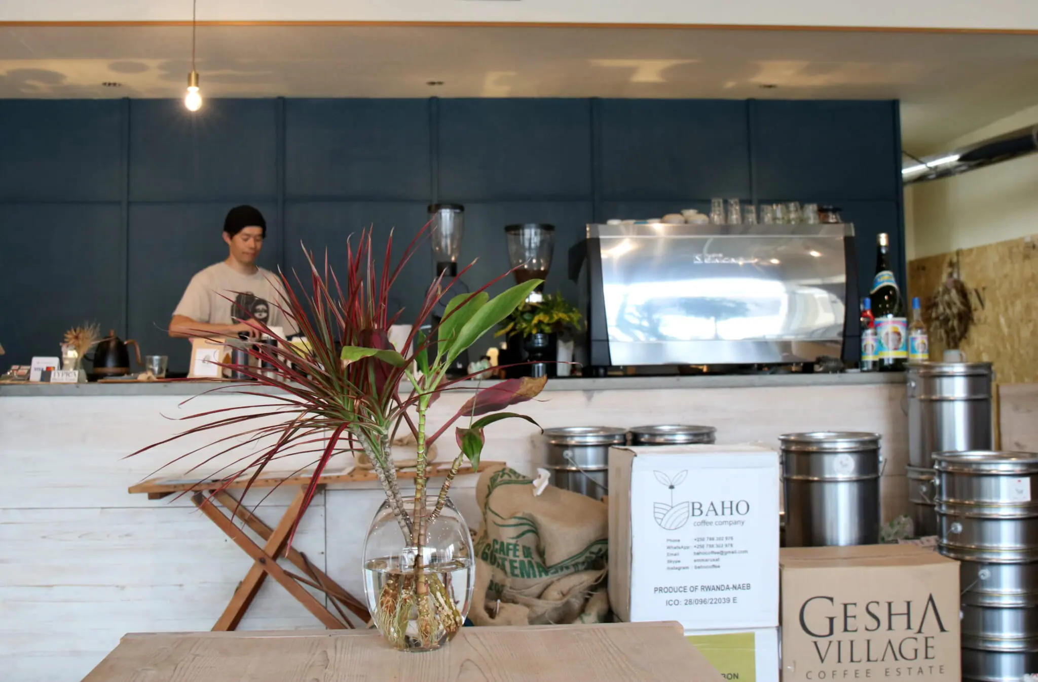 The name means “stars” in the local dialect and Fushi Coffee Roasters is a star in the Ishigaki coffee scene, recommended by many of the coffee baristas on this very list. This is also where Japan roasting coffee champion Yoshiyuki Nakamura comes to practice sometimes. Fushi Coffee is run by a couple, Koichi and Sayaka Matsumoto. Koichi is the barista, while Sayaka makes fresh sweets and pastries and is also an illustrator. She’s behind the coffee shop’s iconic logo of a goat gazing at a coffee-bean-shaped star.