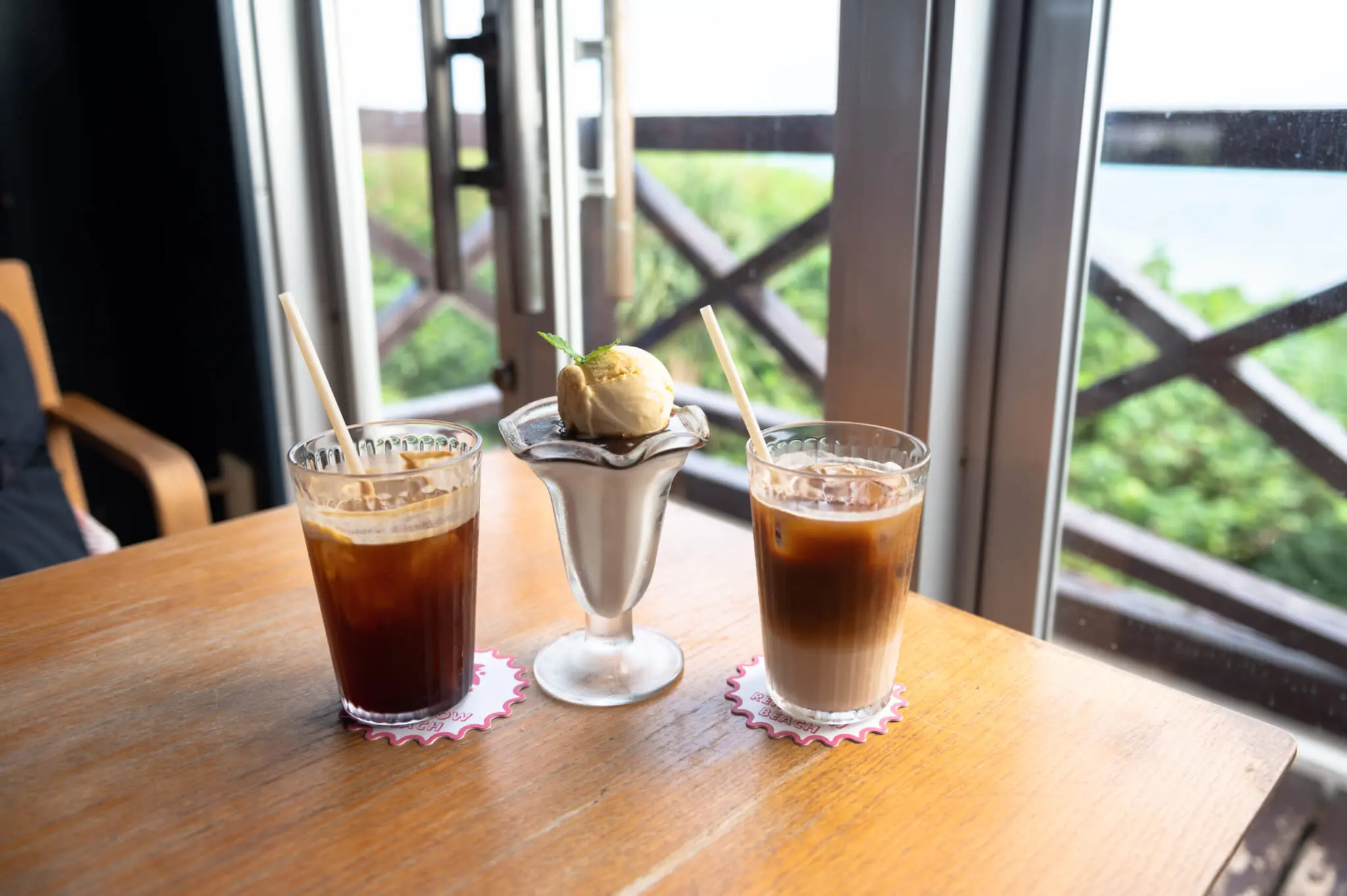 While the food is made on-site, the coffee beans are roasted on the small Kohama Island. The barista is proud of the collaboration between islands, a sustainable practice making sure local businesses thrive. The coffee is tasty and well-balanced, making for satisfying lattes and cappuccinos. A local specialty (not containing coffee though) is the Gettou or shell ginger latte made with a fragrant Okinawan herb. The concoction is tangy, grassy and refreshing.