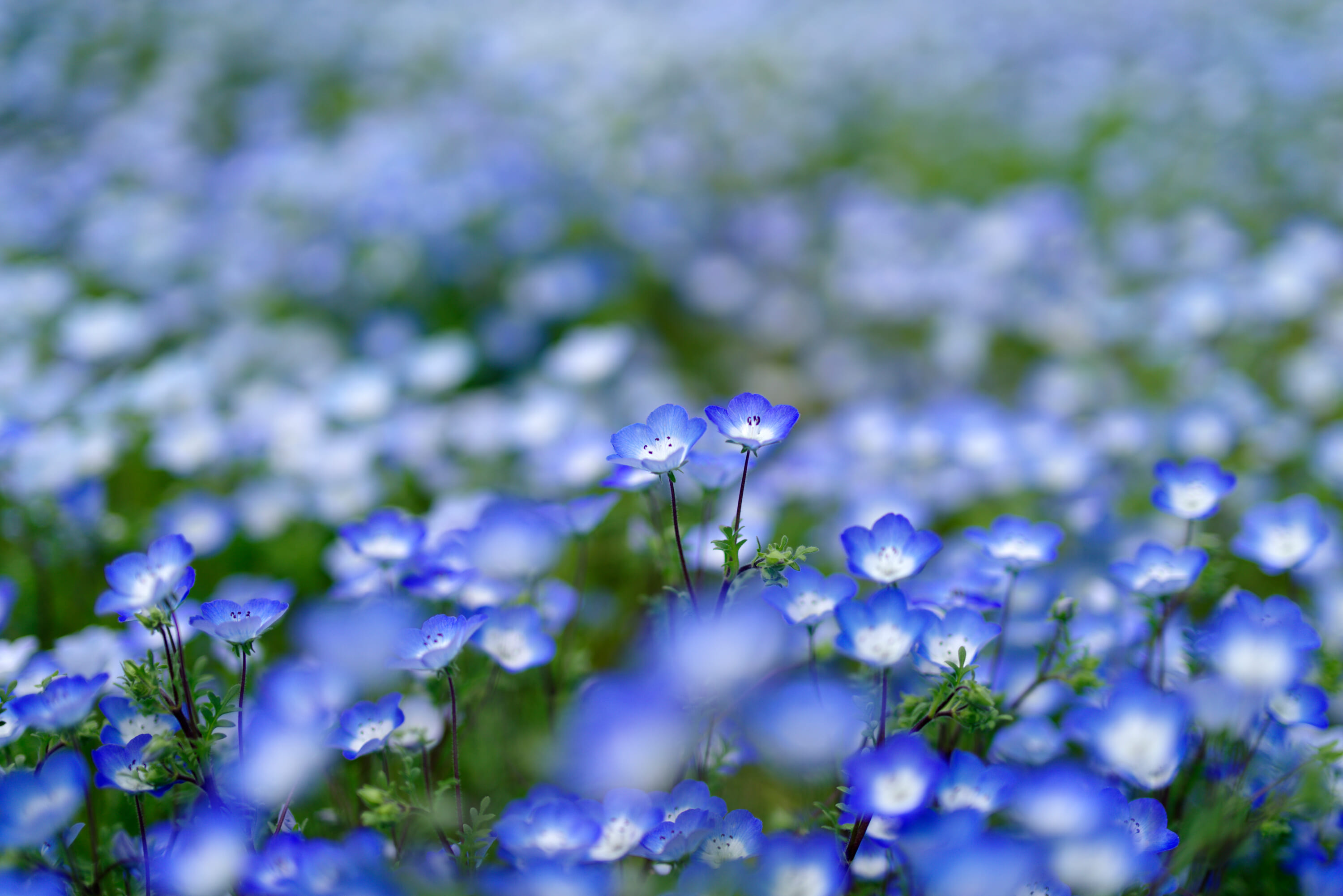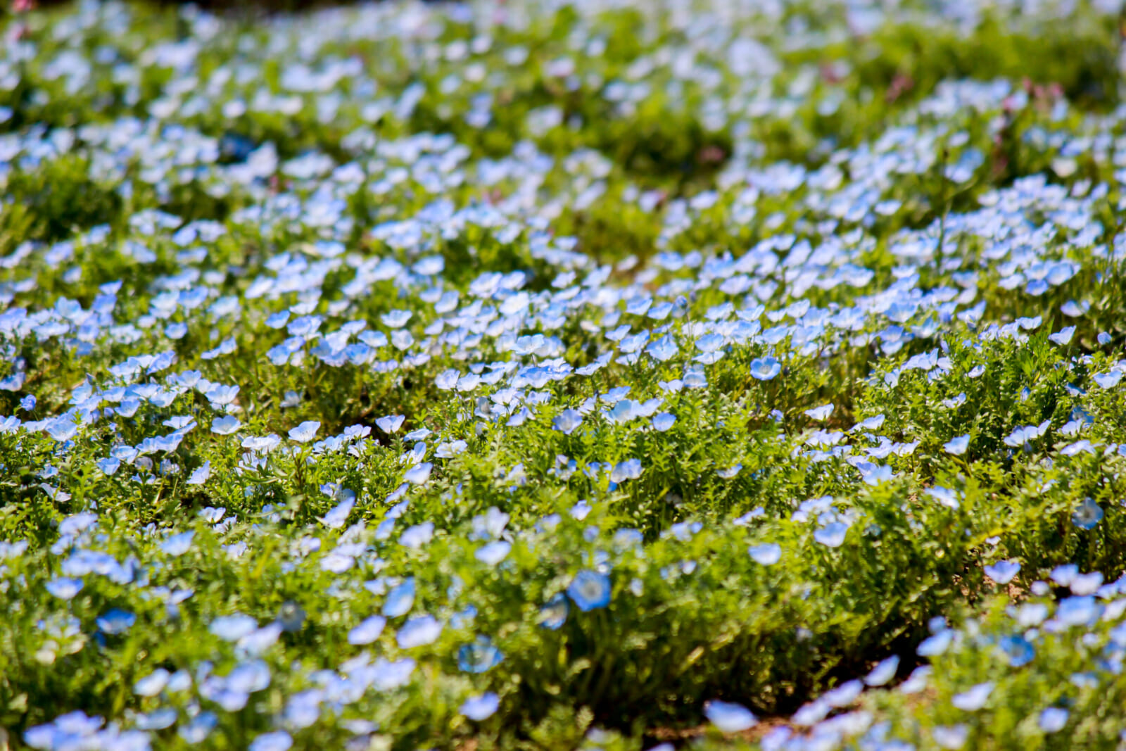 In Japan, nemophila typically bloom from late March through to late May, with the most spectacular displays usually occurring between mid-April and early May. The exact timing varies by location and weather conditions — southern regions generally see earlier blooms.