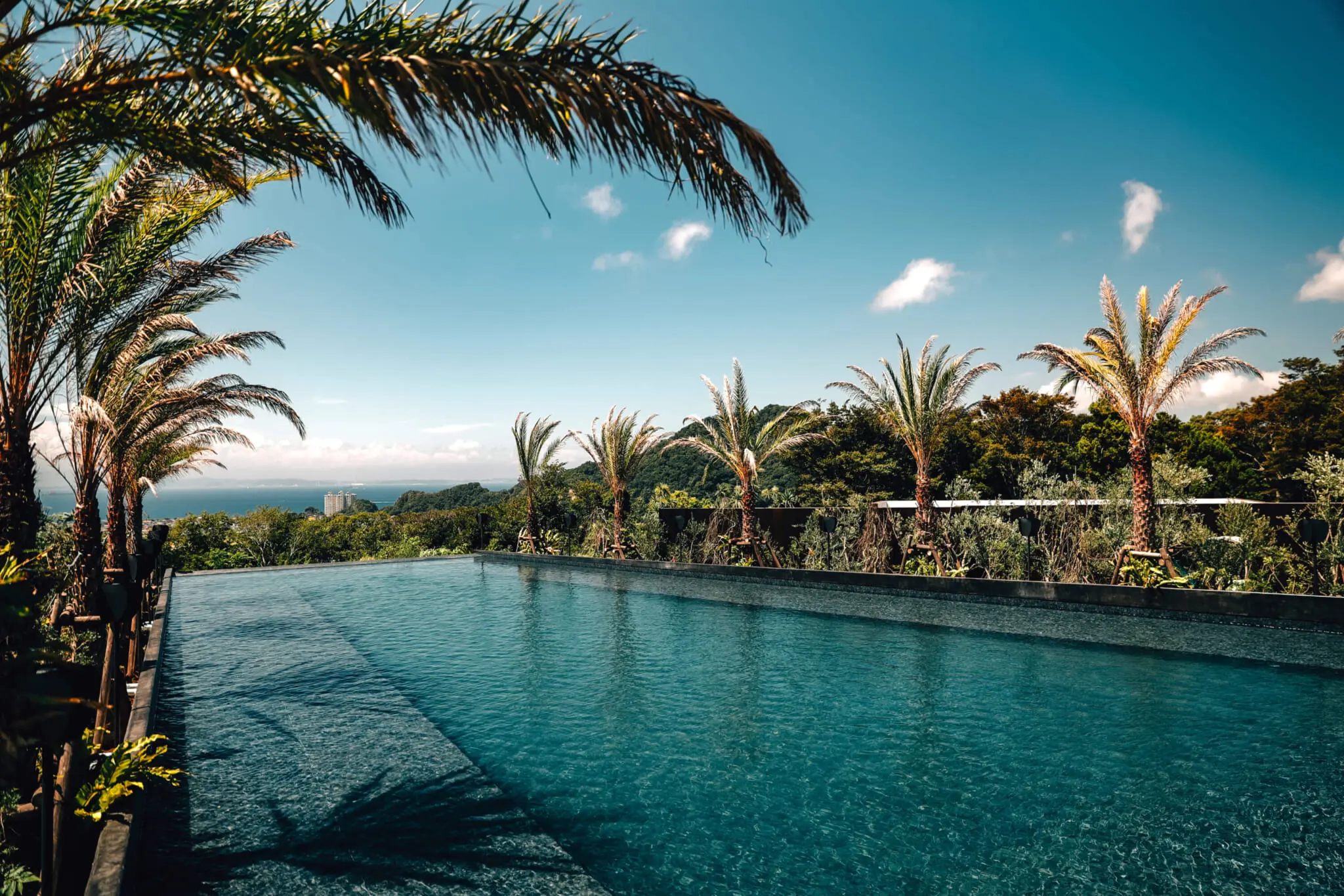 Just over an hour outside of Tokyo in the town of Kyonan, Chiba Prefecture, the Botanical Pool Club has quickly gone viral on social media — and for good reason. Set against a backdrop of natural forest and an ocean view, BPC transports guests to a tropical resort. With its signature circular pool surrounded by daybeds and a 40-meter infinity pool overlooking the ocean and flanked by palm trees and torches that light up at night, it feels more like a Balinese resort than a Japanese countryside retreat.