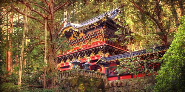 Extravagantly ornamented and comprising over a dozen buildings, the shrine is worth visiting simply to admire the elaborate carvings of patterns and animals, which sport stunningly bright colors and unique detailing. With a shrine so large, it is nearly impossible to point out all the areas of note when visiting, as it includes beautiful torii gates, a five-storied pagoda, a prayer hall, an okusha inner shrine where Ieyasu’s body was buried, and many more fascinating areas to explore. It is certainly an awe-inspiring experience simply standing before the entrance alone and reveling in its remarkable beauty. One particularly noteworthy story, however, is that of the three monkeys, a tale connected to a sculpture found on the Shinyosha, or Sacred Stable. It contains eight panels depicting images of monkeys that tell the story of life, from childhood to parenthood. The carving of childhood shows three monkeys that illustrate the proverbial principle to “see no evil, hear no evil, speak no evil,” with one covering his eyes, another his ears, and the third his mouth. Closer examination of the carvings decorating the shrine will reveal many more interesting figures such as these.