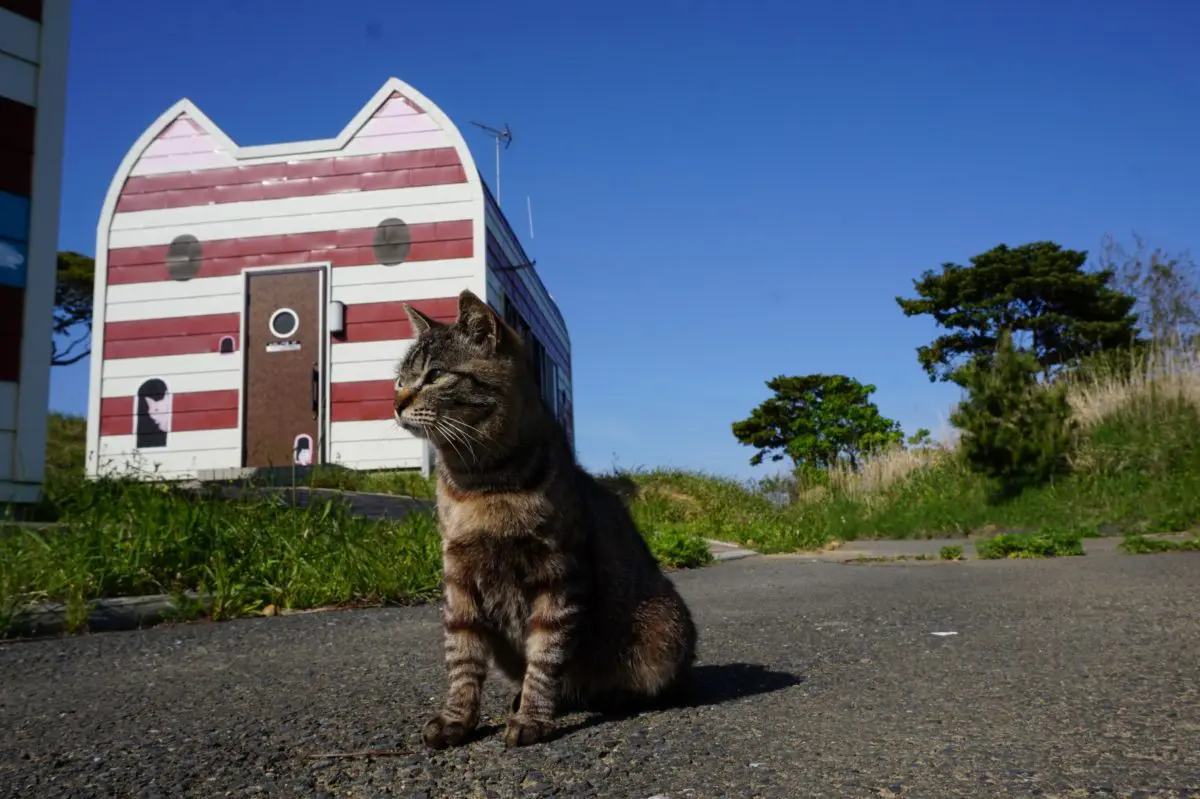 Situated off the coast of Ishinomaki, Tashirojima is home to just 48 people as of March 2024, while its feline population nearly quadruples that of its human residents. Originally brought over to protect the island’s silk farms, its cat residents are revered by the locals. There’s even a cat shrine there, honoring a cat that accidentally lost its life in a fishing accident. Most cats are found around Nitoda Port, one of the island’s main villages, and near Kamabutsu Shoten, the only store located on the northwestern shore of the island.