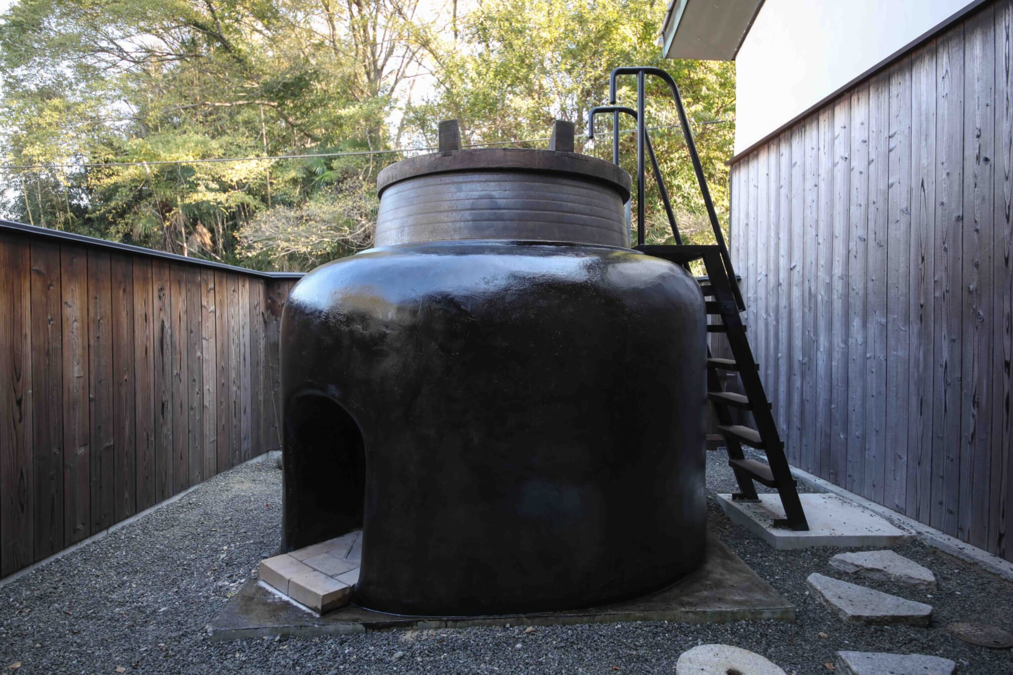 This unique work of art doubles as an art gallery and a guesthouse, with site-specific installations by celebrated artists on display throughout. Another wonderful feature is its oversized outdoor goemon bath — a cast-iron structure shaped like a cauldron and heated from below, typically using firewood. The bath here is so gigantic that it can only be entered via ladder, and it can fit up to four people.