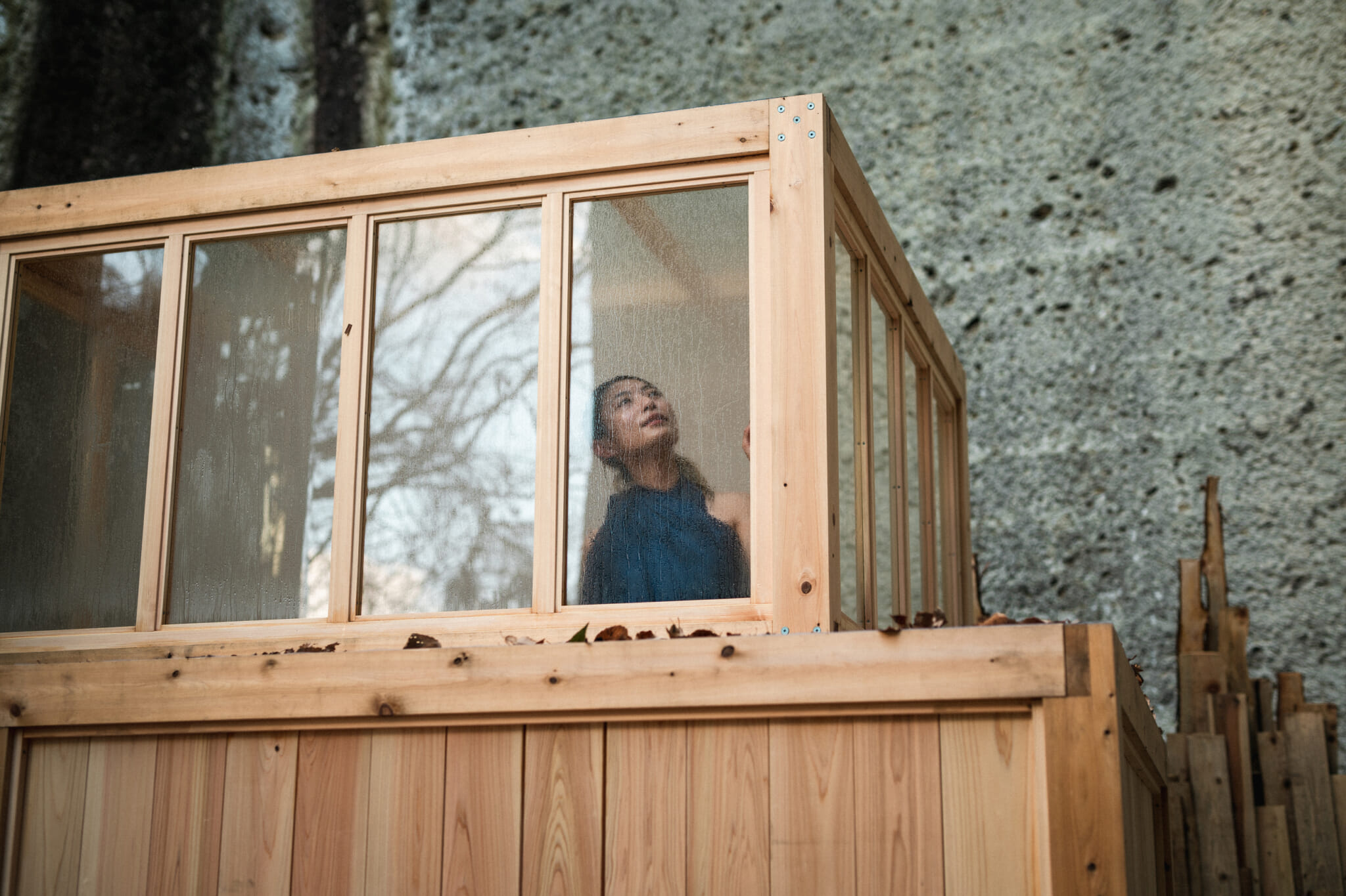 The entrance to Genki-ro, which means “the furnace of vitality,” looks like a huge tree trunk, split open to reveal a hall of mirrors. Through this, you’ll find a steam sauna, which is powered by an outdoor furnace. For a ticket price of ¥3,500, you can enter and find yourself immersed in the healing haze — as it’s a public space, you need to wear a bathing suit inside; you can rent one of these on-site if you forget your own.