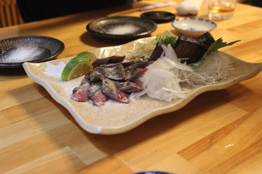 During the autumn the bonito have more fat giving them a deeper flavor profile and a richer taste. Whether you visit in spring or autumn, both types of seared bonito are served slightly warm and with salt for taste.