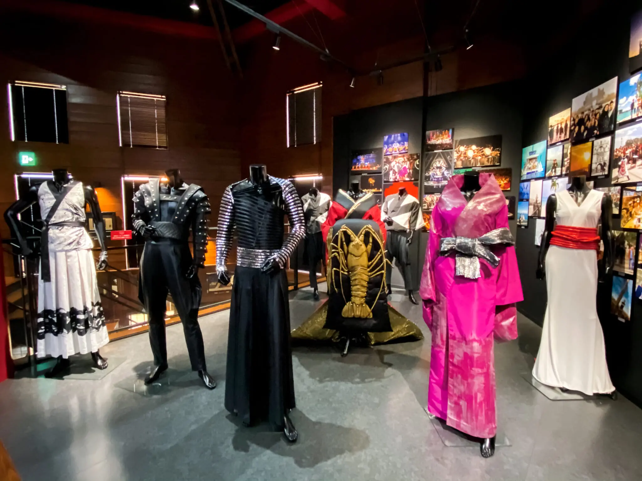 In addition to food and drink, visitors to Tao House are treated to a wealth of Drum Tao related experiences, including a movie showing past performances and exclusive clips, as well as a shop with official Drum Tao and Tao no Oka merchandise. For those who enjoy the memorable Tao regalia, there is a permanent exhibition featuring actual costumes worn by members. These are all designed by the formidable designer Junko Koshino and displayed alongside behind-the-scenes footage of Drum Tao tours. Elsewhere is Tao Hall, a space with 12 monitors showing different Tao-related clips — almost like a moving picture exhibition. Visitors can even glimpse the sky stage from the hall’s windows.