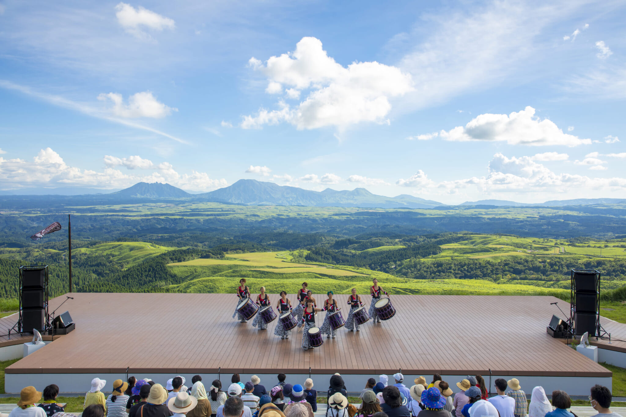Pioneering Japanese drumming troupe Drum Tao (stylized as DRUM TAO) are known for their fresh take on traditional Japanese taiko drums. The group, which celebrates its 30th anniversary in 2023, has held acclaimed performances in over 500 cities across the USA and Europe, with more being added to the list every year. Drum Tao takes their performances to new heights — both literally and figuratively — at Tao no Oka (Tao Nature Theatre), custom-built in the mountains of Aso-Kuju National Park.