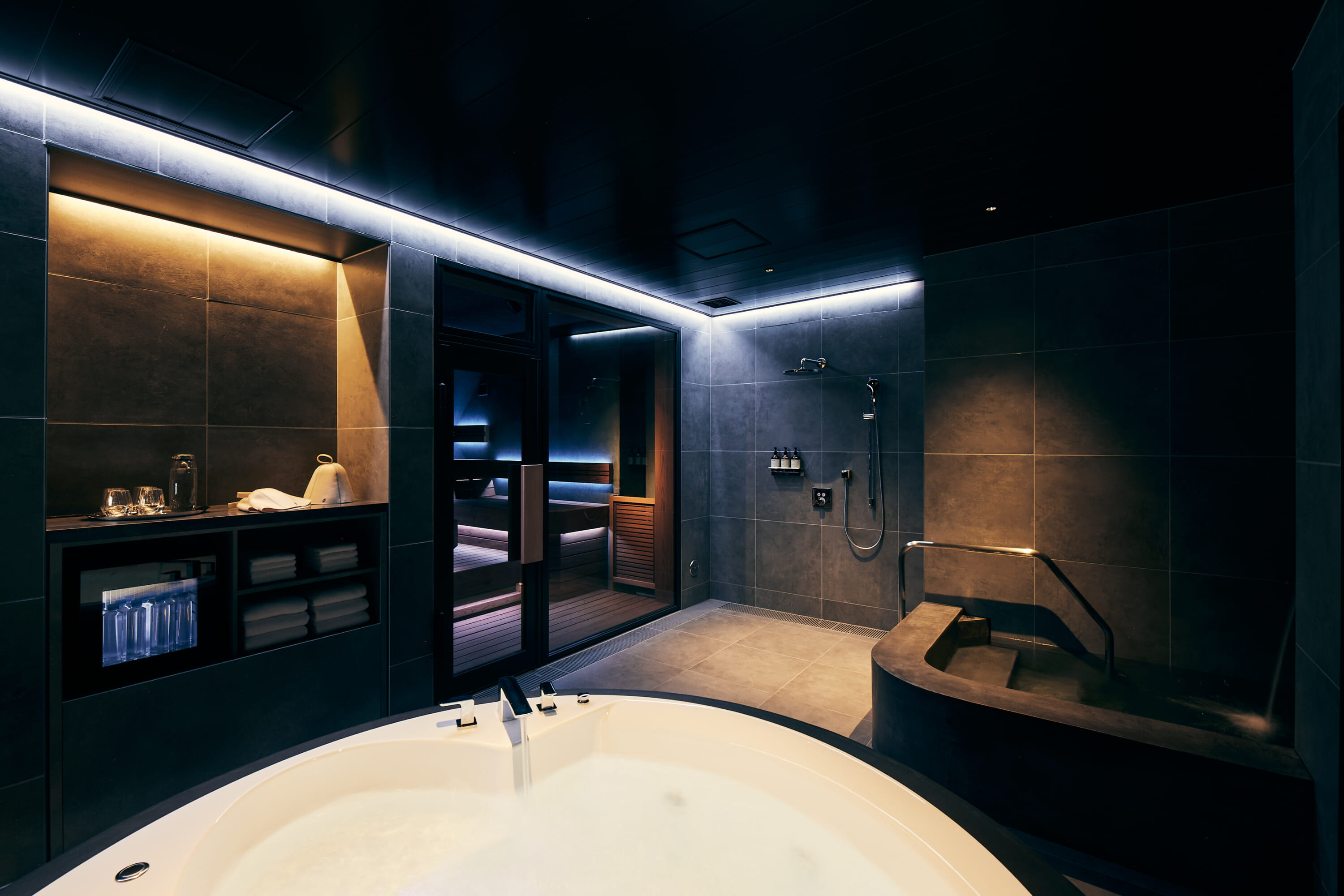 Another healthy option is a private hybrid sauna that blends Finnish and Morris styles and accommodates up to eight people. With a 90-centimeter-deep cold bath, a hot tub and a large sofa area, it’s a great place to unwind for guests who don’t have a sauna in their room. Reservations are also accepted for non-staying guests.