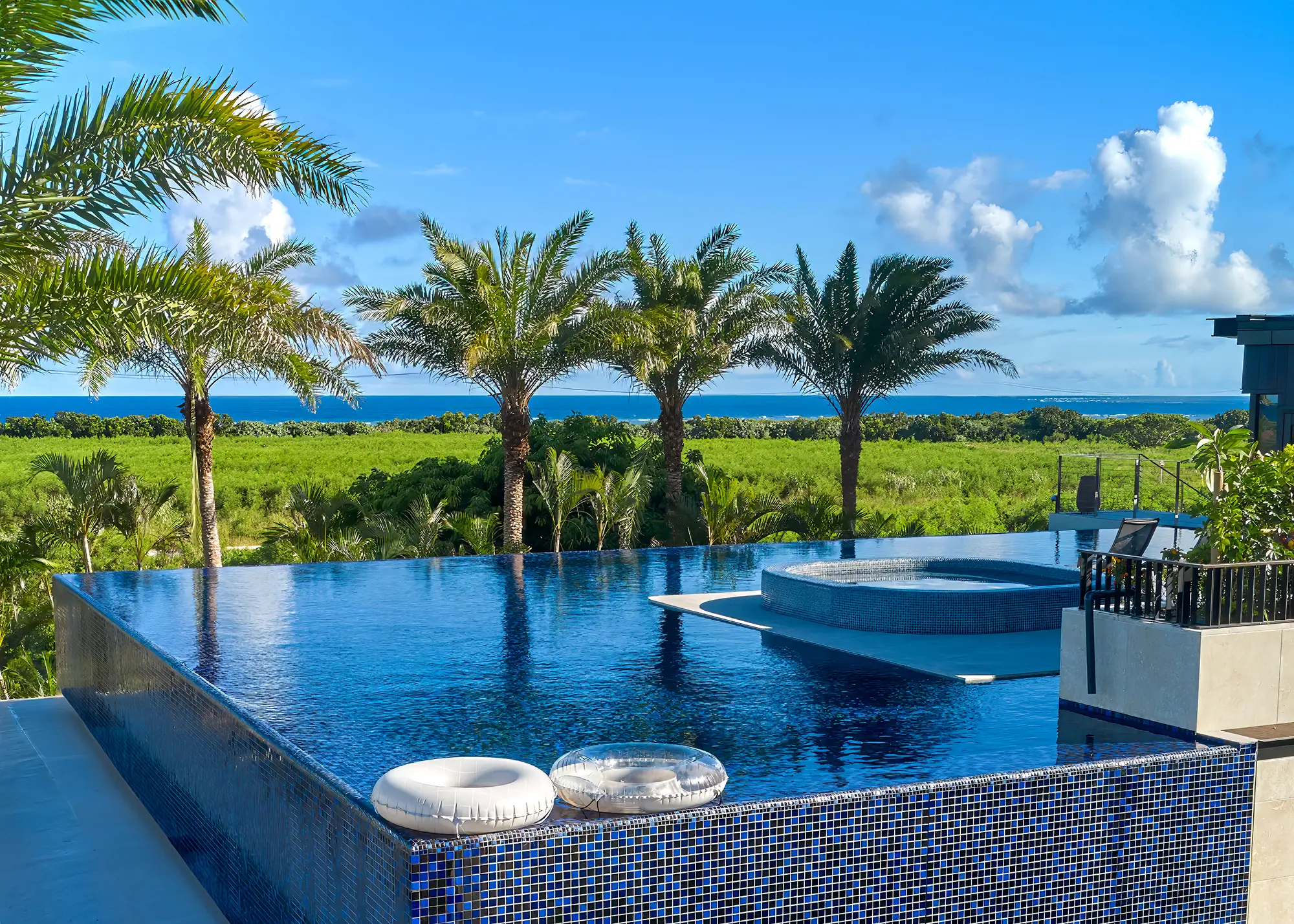 “The former is designed to be large and welcoming, with two sections, one specifically for children,” says Miskin. The latter allows for stunning panoramic views of the sea and coastline, and it has a swim-up bar, as well as a dedicated dining area where guests can enjoy cocktails, food and shisha.