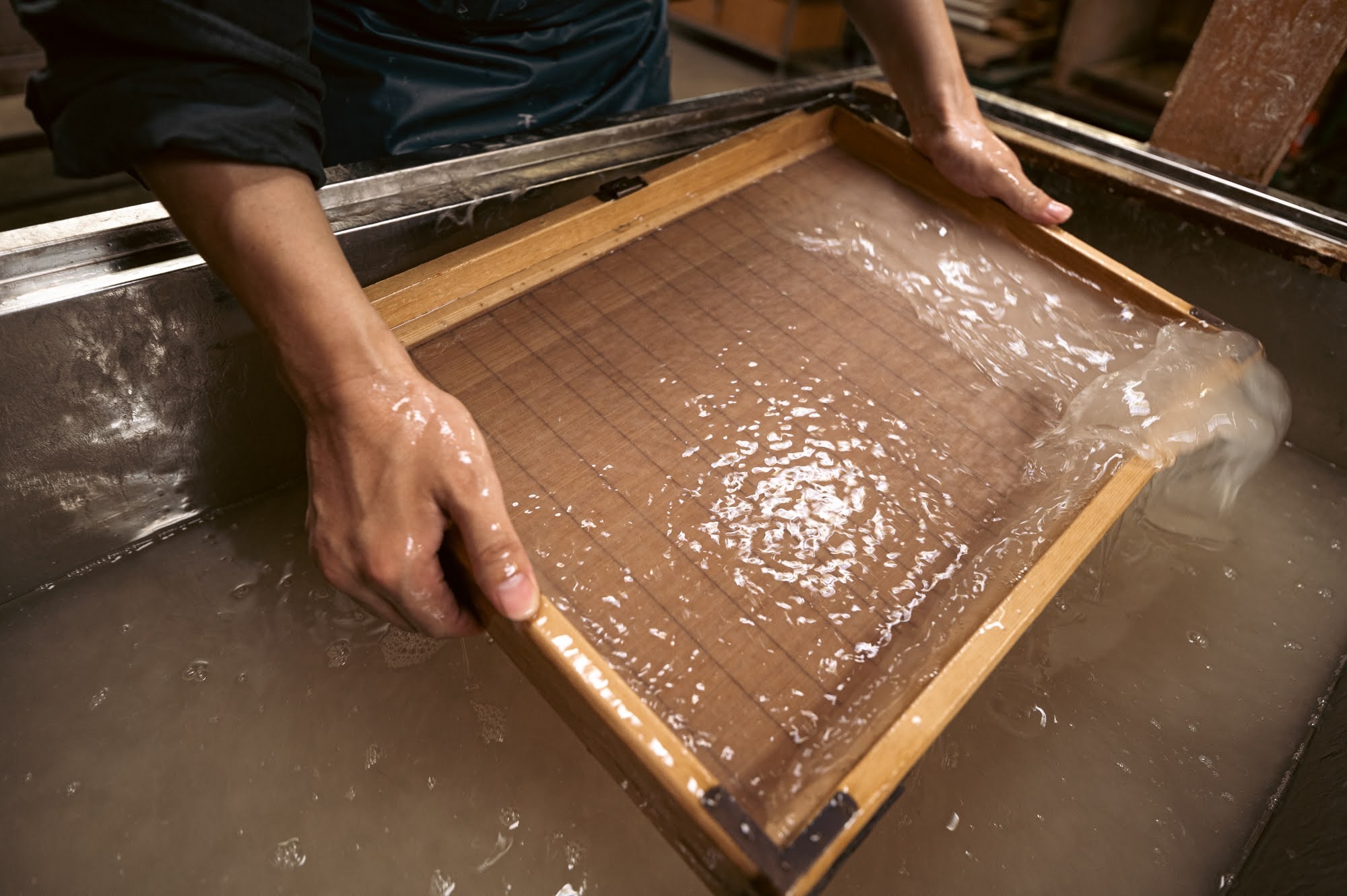 Going back as far as the 1100s, it’s believed that a proclamation of war distributed across Japan by samurai leader Minamoto no Yoritomo was written on Shuzenji paper. The same paper is also used in a supplementary copy of the Azuma Kagami, a historical book today recognized as an Important Cultural Property of Japan. Shuzenji paper is made from 100 percent natural materials, including natural spring water, mitsumata trees grown by Shuzenji Kamiya themselves and aibika plants. The production process is almost entirely conducted by hand, making this traditional item a sustainable one.
