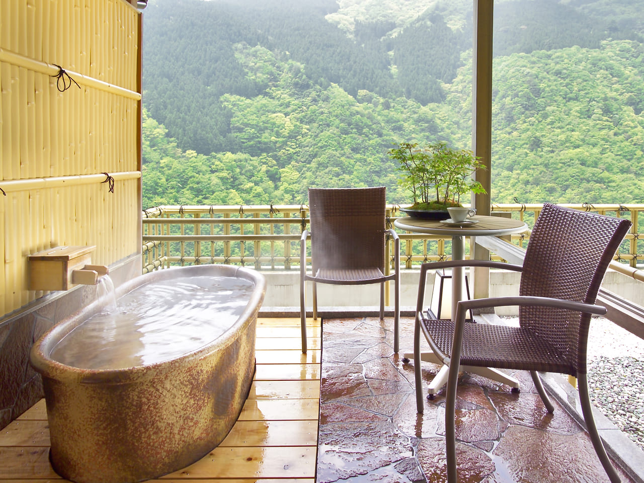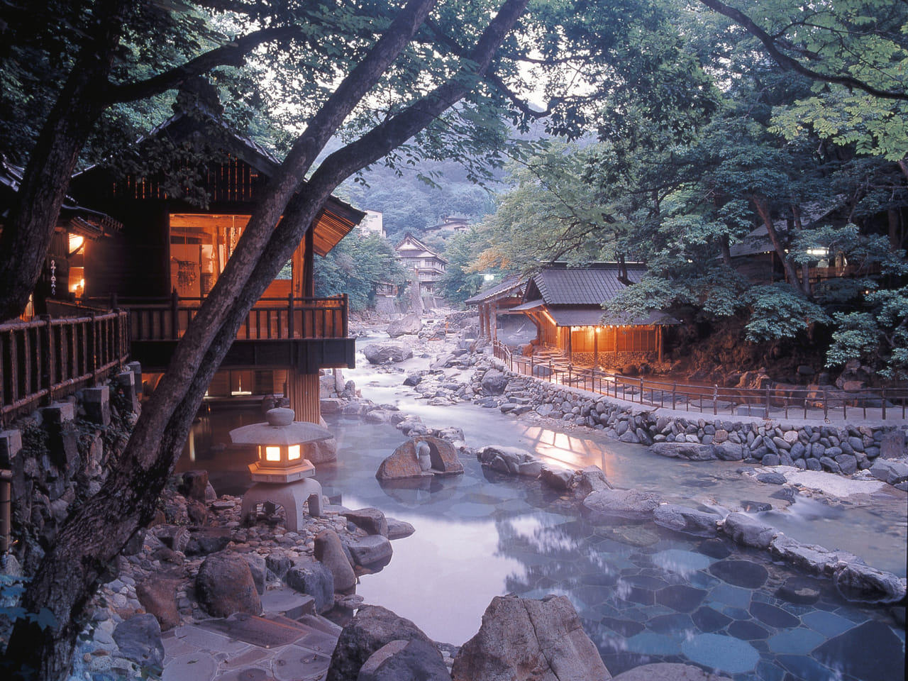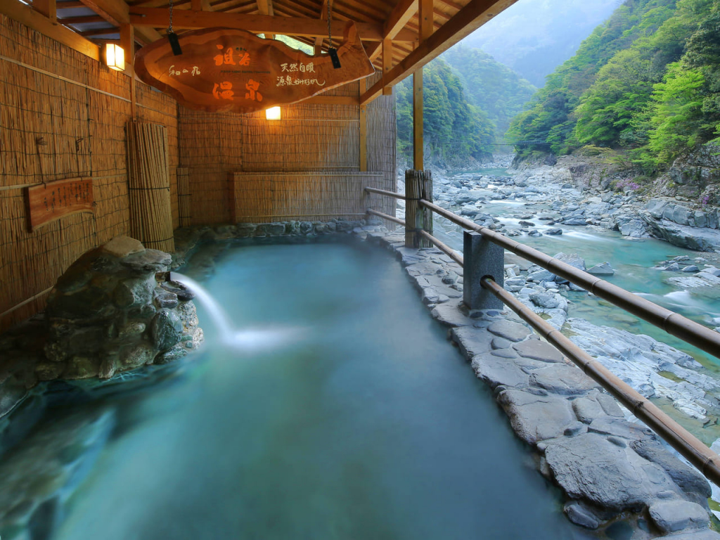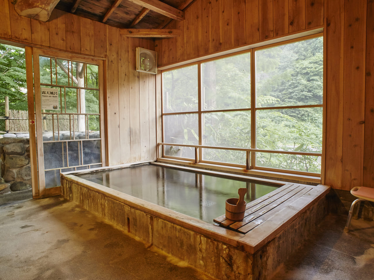 This ryokan has a 140-year history and is registered as a National Tangible Cultural Property. Located inside Joshinetsu-Kogen National Park, it’s protected by the shade of trees in summer, making it the perfect place to escape the summer heat. The Hoshi no Yu bathhouse, constructed in a typical Meiji period style, has mixed bathing facilities for the brave. Choyu no Onsen is for women only and sits adjacent to a nearby stream, offering a beautiful vista of the flowing water and forest surrounding it. Dropping in for lunch and a bath is permitted, but make sure to reserve in advance.