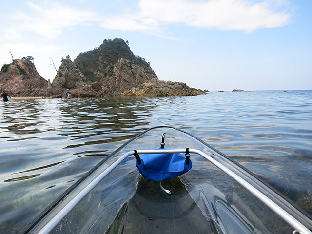 Uradome Beach, near the Tottori town of Iwami, is home to a beautifully rocky coastline as well as incredibly clear water, rivaling that of some of Okinawa’s beaches. This is where visitors can paddle away in four-meter-long, clear polycarbonate canoes, from which they can see schools of horse mackerel, sea anenomes, squid, and other sea creatures. In some spots near Uradome Beach, visibility extends down as far as 25 meters. The area off Uradome Beach is part of the San’in Kaigan Geopark, and guests can tour the coastline or explore naturally formed caves in the Geopark.