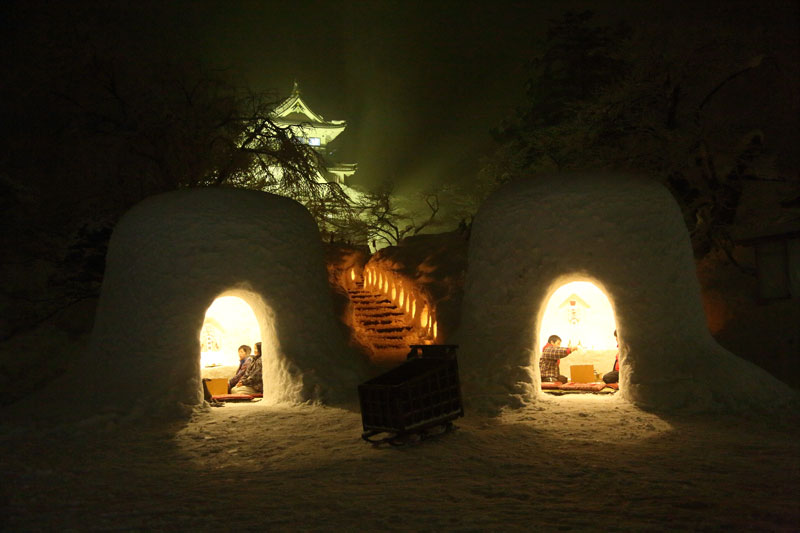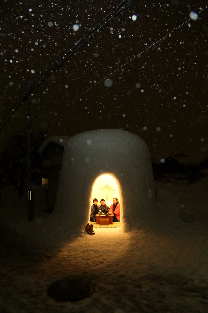 of Yokote choose to embrace the low temperatures as they celebrate the town’s most well known festival. Following a tradition that has been maintained for 400 years, the people build what are known as kamakura—small, round houses that look like igloos—along the streets of the city’s central neighborhoods and leading up to the shadow of Yokote castle.