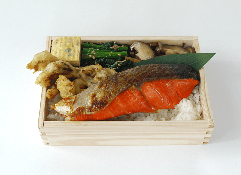 Visit the castle town of Murakami in winter and you’ll be met with rows of salmon hanging from rooftops across town. The area’s specialty, shiobiki dried salmon, finds its place in an aged shiobiki dried salmon bento in this stand’s lunch menu, alongside Murakami’s other mainstay, Murakami beef. The beef bento is served on a bed of soft and chewy koshihikari rice from Iwafune. For dinner, try beef-on-a-stick, or a shiobiki salmon packet cooked in oil with shiitake mushrooms. For those with a sweet tooth, there’s a soft serve ice cream mixed with green tea powder and garnished with nuts, honey and a dash of salt.