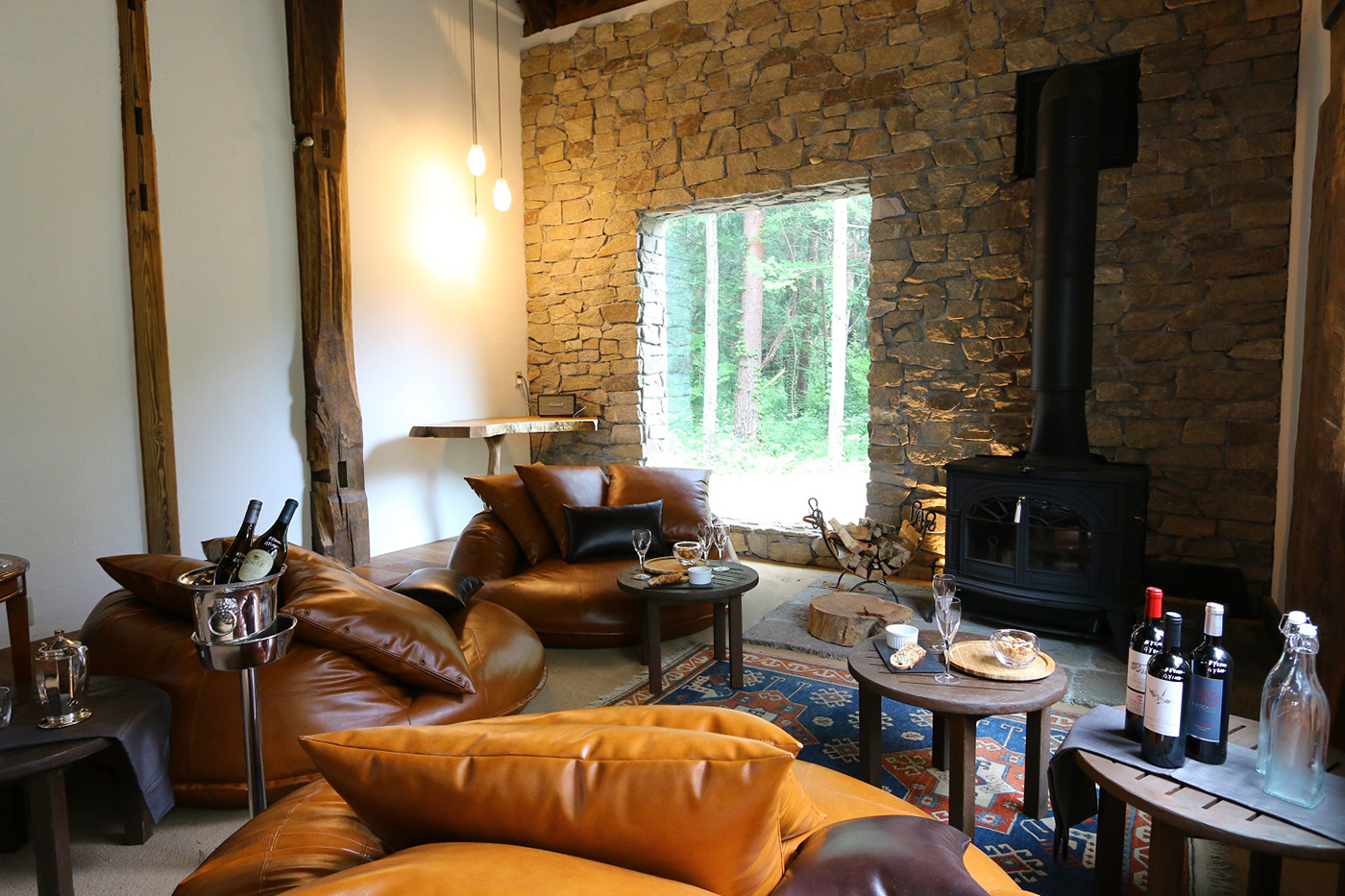 Traditionalists may prefer the thatched-roof guesthouse, a gentrified building from Niigata Prefecture relocated to the more southern climes of Kawaguchiko. The 263-square-meter cottage has five twin bedrooms, which can accommodate up to 10 guests, shower booths and an outdoor jacuzzi. The indoor space has a timber-and-stone, mountain-man feel, with splashes of modern art and plush furnishings. A party of guests can also enjoy auberge-style dining around the house’s sunken hearth, where a professional chef will entertain the diners. For more information or questions about the dining options, guests can consult Glamping Villa Hanz staff upon arrival. Please note that guests are not allowed to bring their own ingredients.