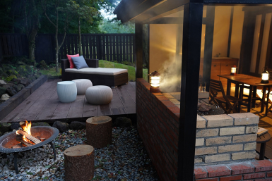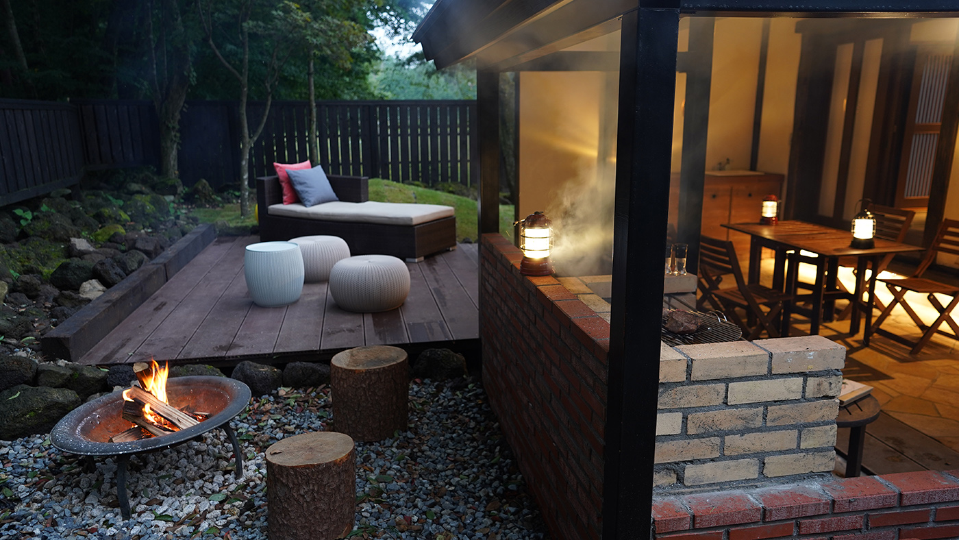 Guests can enjoy complimentary coffee and drip sets, said to taste exceptionally delicious when prepared with vanadium-rich water. Luckily, Glamping Villa Hanz’s water is pumped from the grounds of nearby Mount Fuji. For sustenance, crank open the terrace BBQ and tuck into a flame-grilled dinner in view of the night sky. Enjoy quality meats and vegetables, and take your pick from a variety of appetizers from the buffet.