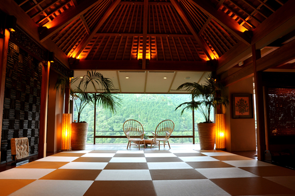 On arrival we were greeted by an enthusiastic, English speaking staff member who gave us a brief description of the layout of the hotel and asked if there was anything we couldn’t eat so our dining experience would be as pleasant as possible. We were given a warm welcome and felt instantly at home. Making our way from the ryokan’s lobby area to the reception, which is on the 5th floor, then out again to the balcony, we enjoyed drinks while taking in the amazing scenery. Already feeling refreshed, relaxing in the wonderful setting overlooking the steep valley and beatutiful Haya River was a memorable way to start our stay at the resort.
