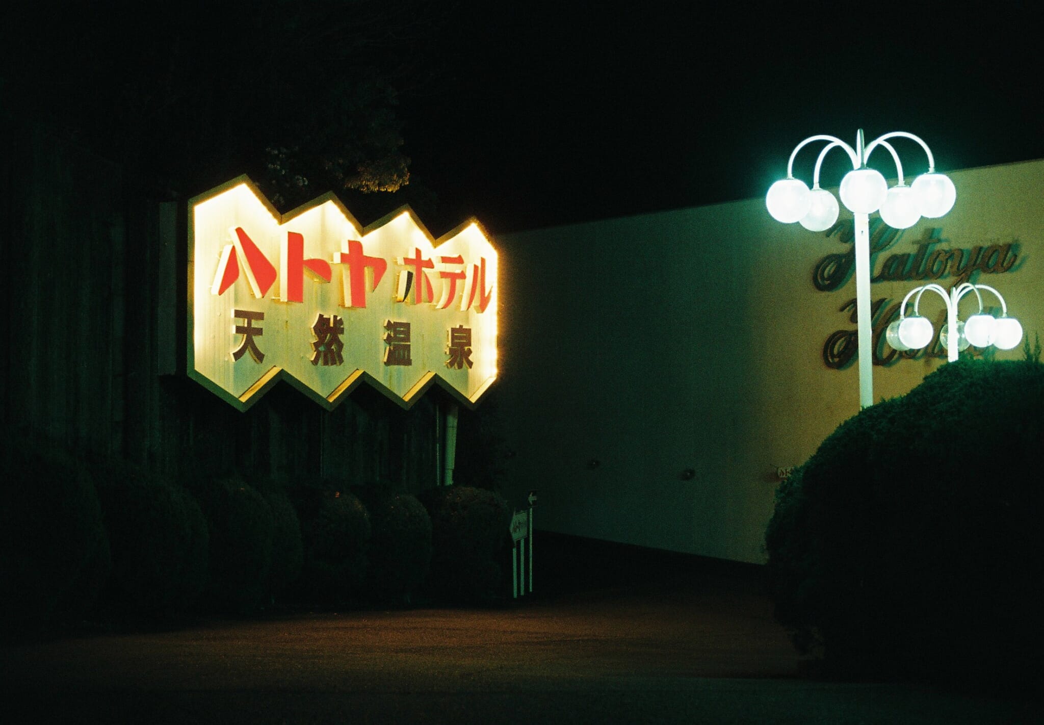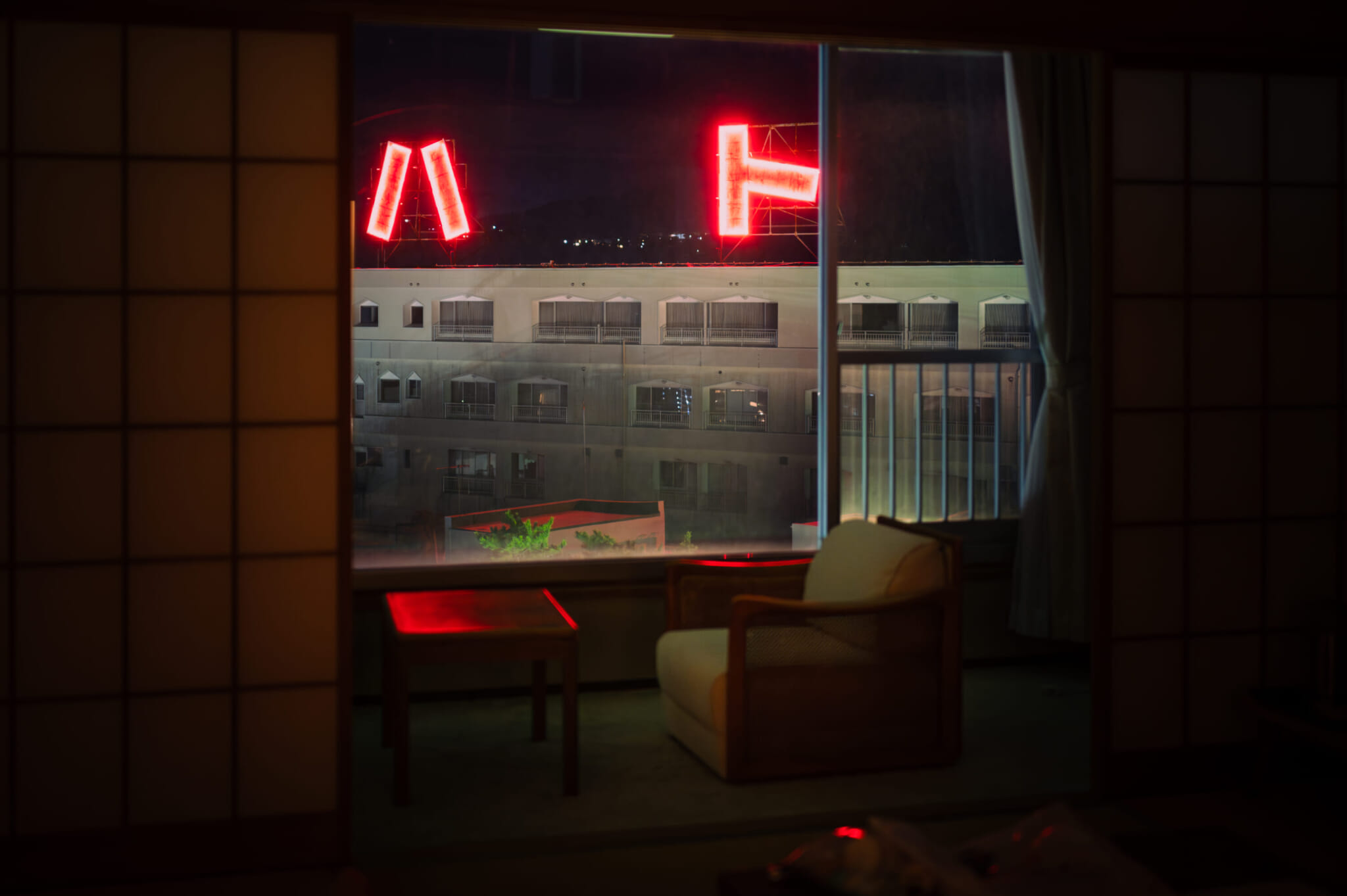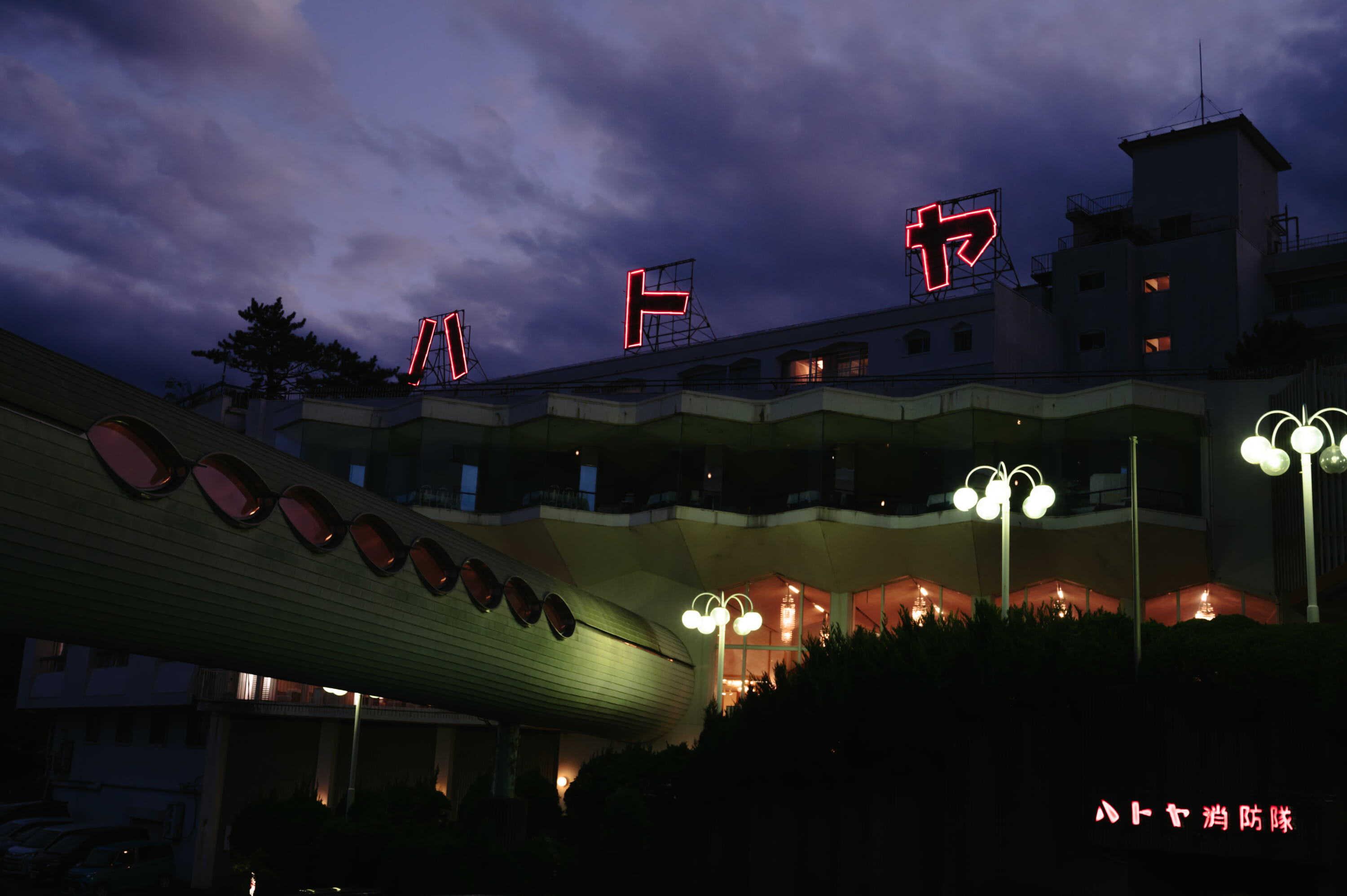 Perched on a mountain overlooking the sleepy beach town of Ito stands a dazzling white hotel that seems somehow lost in time. From its front emerges a distinctive, spaceship-like tube, stretching out across the parking lot like an extended arm; on its roof are three gigantic, rusted katakana characters that glow neon at nighttime: ha – to – ya.