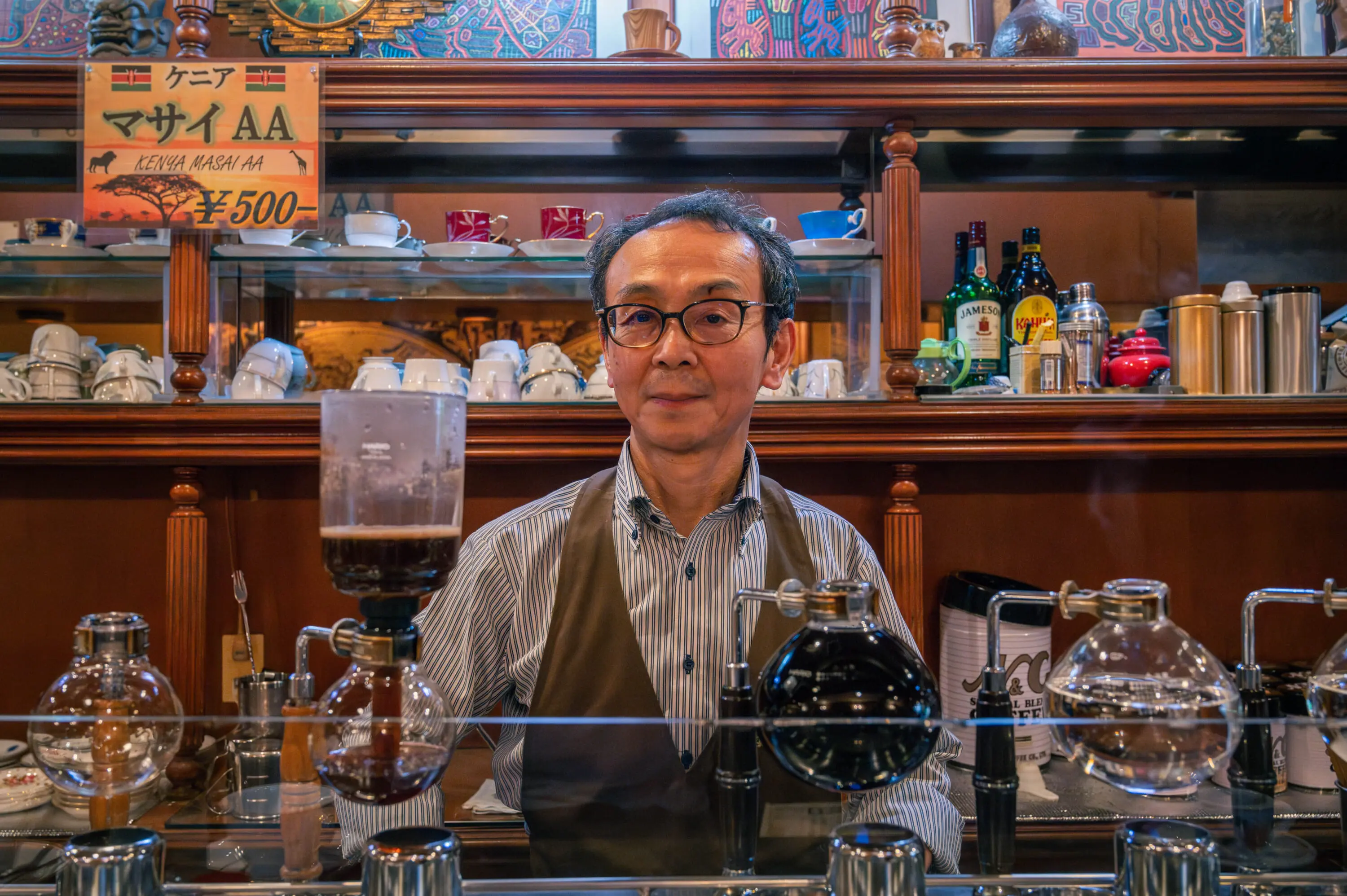 For a charming dive into coffee history, enter Himeji’s shopping arcade to find Hamamoto Coffee, which Takuya Hamamoto, the master brewer and owner, opened in 1975. Hamamoto resembles a scientist, lighting burners beneath glass containers, as he works tirelessly making siphon coffee. The Himeji local prides himself on having a wide variety of coffee beans on hand, as well as on making some of his own blends. Never having repeated a blend, Hamamoto was working on blend number 202 at the time of our visit.