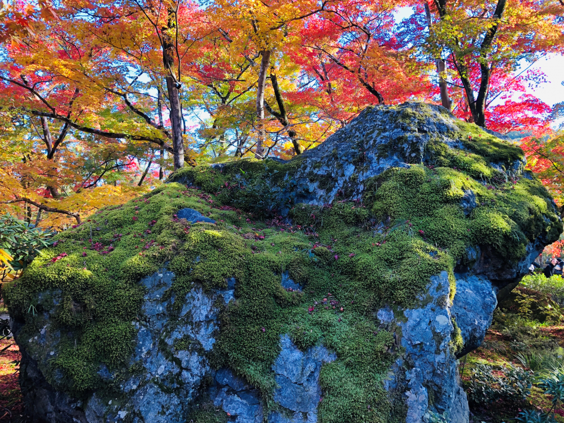 Hogon-in, a sub temple of Tenryu-ji, established in 1461 by Hosokawa Yoriyuki, a deputy of the Muromachi Shogunate, is famed for its Japanese garden known as “The Lion’s Roar Garden.” The colorful foliage and the fresh green moss which beautifully decorate the figure of the holy creature most exquisitely produce a sensational harmony amongst its surrounding garden and the “borrowed scenery” of Arashiyama, which subsequently creates a sublime landscape of autumn.