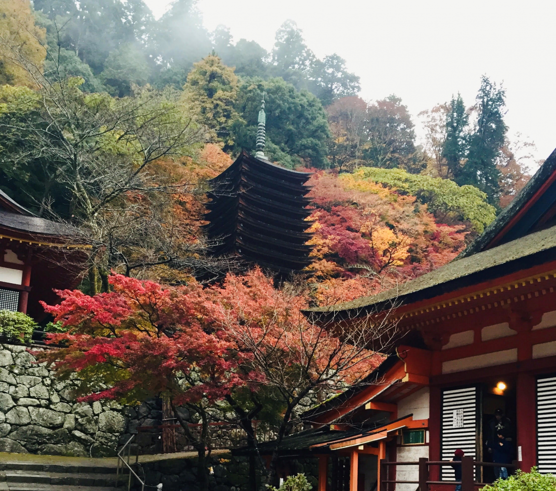 The 12-storied pagoda, dedicated to Fujiwara Kamatari, is a designated important cultural property of Japan. The magnificent colors of the autumn foliage gleam at the historical monument of Tanzanjinja and make this place like no other.