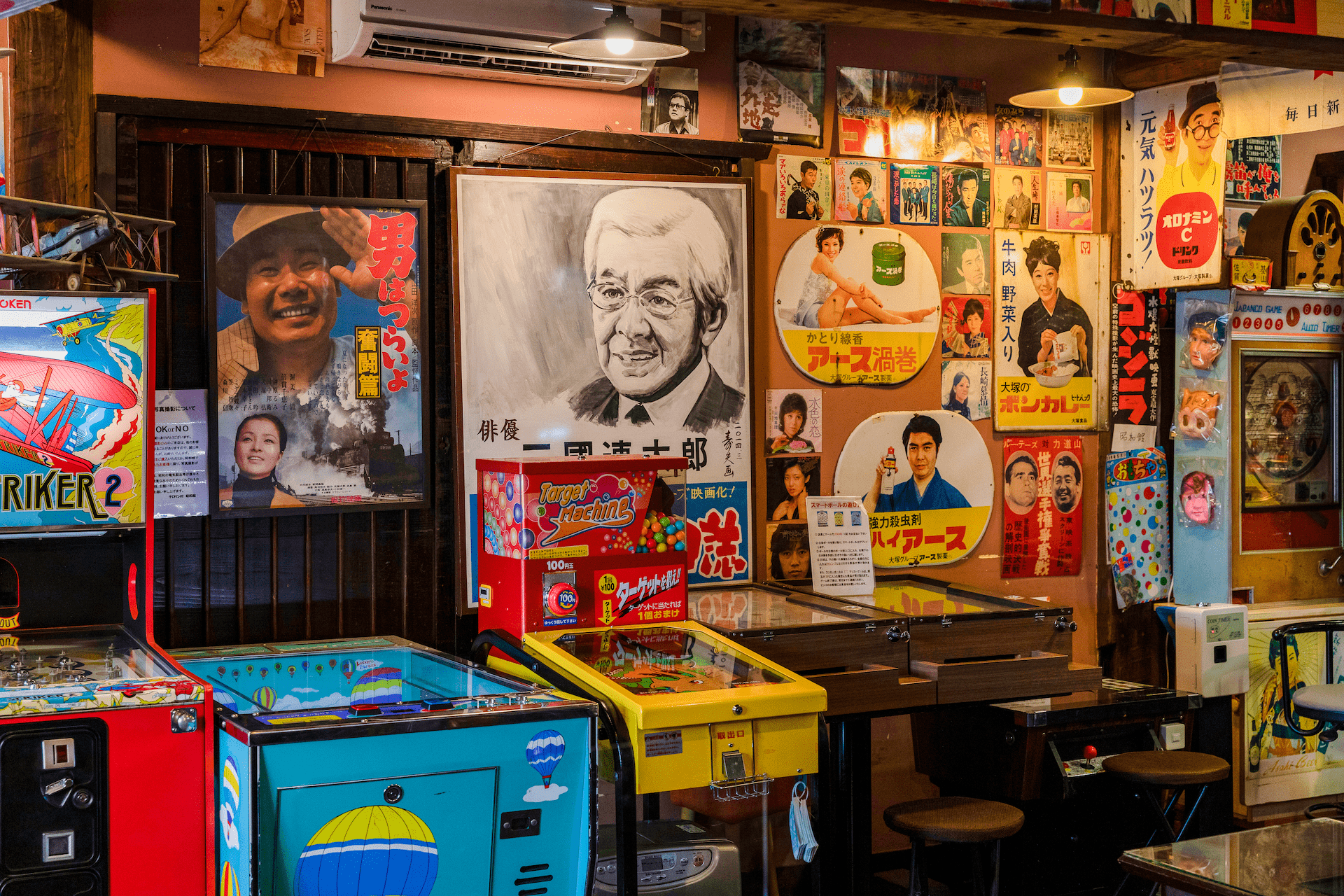 Cherorin Mura is a dagashiya (a retro toys and sweets shop) connected to Showa Kan, an old electronics and games showcase by day and a bar by night. Akemi and Etsuo Higuchi, a lovely welcoming couple, run them respectively. What sets this place apart from other nostalgia shops are the whirring, buzzing, blinking machines. Everything works, from the 70-years-old fridge to the Space Invaders arcade games. Etsuo is a former electrician who repairs machines and gives them new life. He comes up with creative ways to connect old tech to new tech, because a 1950s TV cannot normally receive today’s TV channel frequency. He welcomes people to come visit, play a game, play a record or just enjoy the time slip.