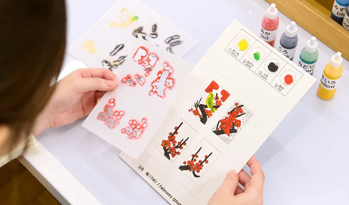 Once you’ve made your cards, take them to the Play Room and try Hana Awase, a popular version of the game where players capture cards from the table by matching them. Don’t worry if you’re unfamiliar with the rules, as image recognition and projection technology will guide you step-by-step through the game. Keep in mind that the workshop and play activity require a reservation on the day of your visit and will cost you a separate participation fee of ¥2,000 and ¥500, respectively.