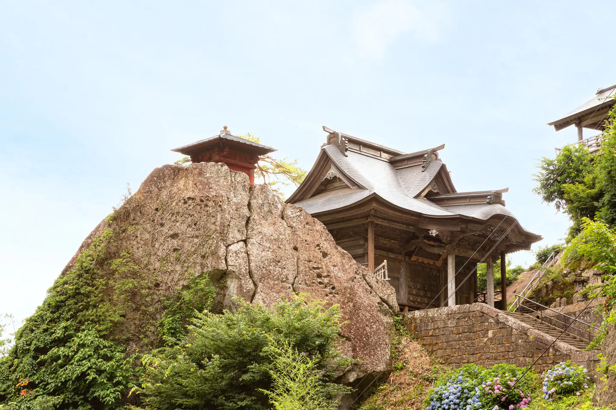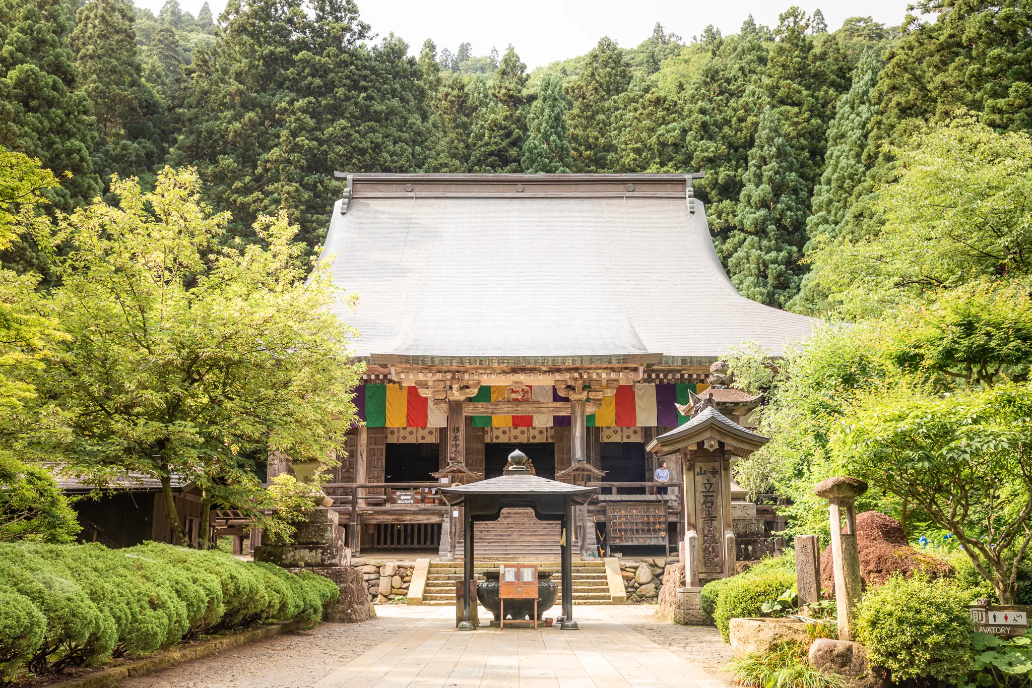 Just beyond the town of Yamadera rises Mount Hoju, which houses Risshakuji Temple. Also known as Yamadera (literally “mountain temple”), this Buddhist complex dates back to 860 and resembles a town built into the mountainside. To reach it, visitors must climb 1,015 stone steps. The arduous journey is rewarded with unparalleled views of the surrounding scenery from Godaido Hall, which serves as an observation deck.