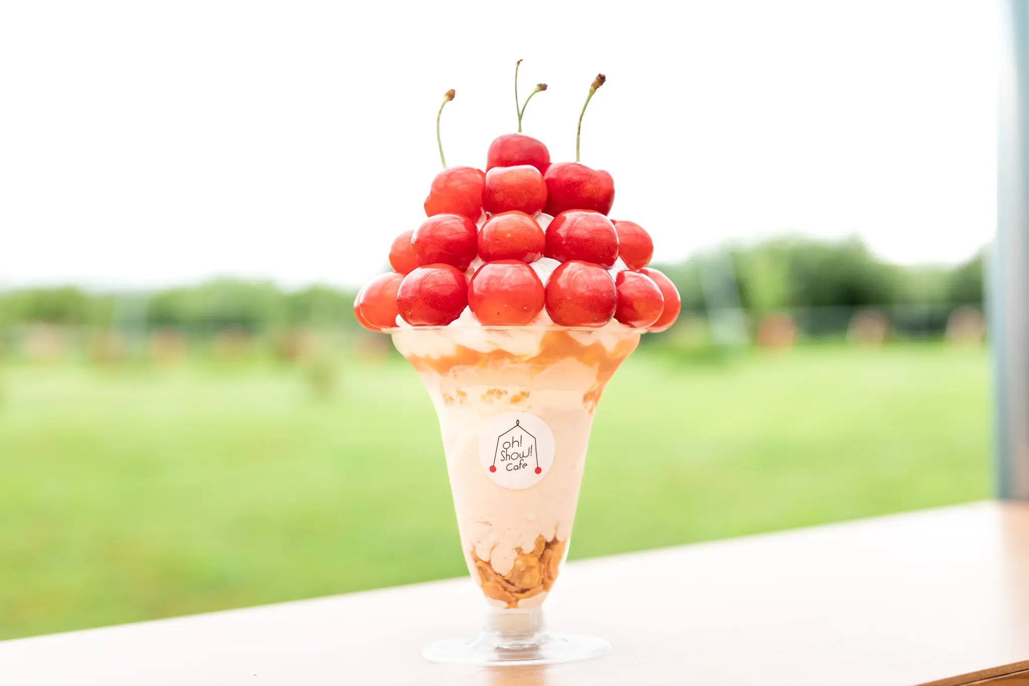With this in mind, we headed to Ohsyo Fruits Farm in Tendo to sample its cherry parfait. Tendo native and Oh! Show! Café manager Ayumi Sudo shared one of her secrets to enjoying Yamagata cherries. Her advice: Soak them in ice water first, as it makes them firm and boosts their flavor.