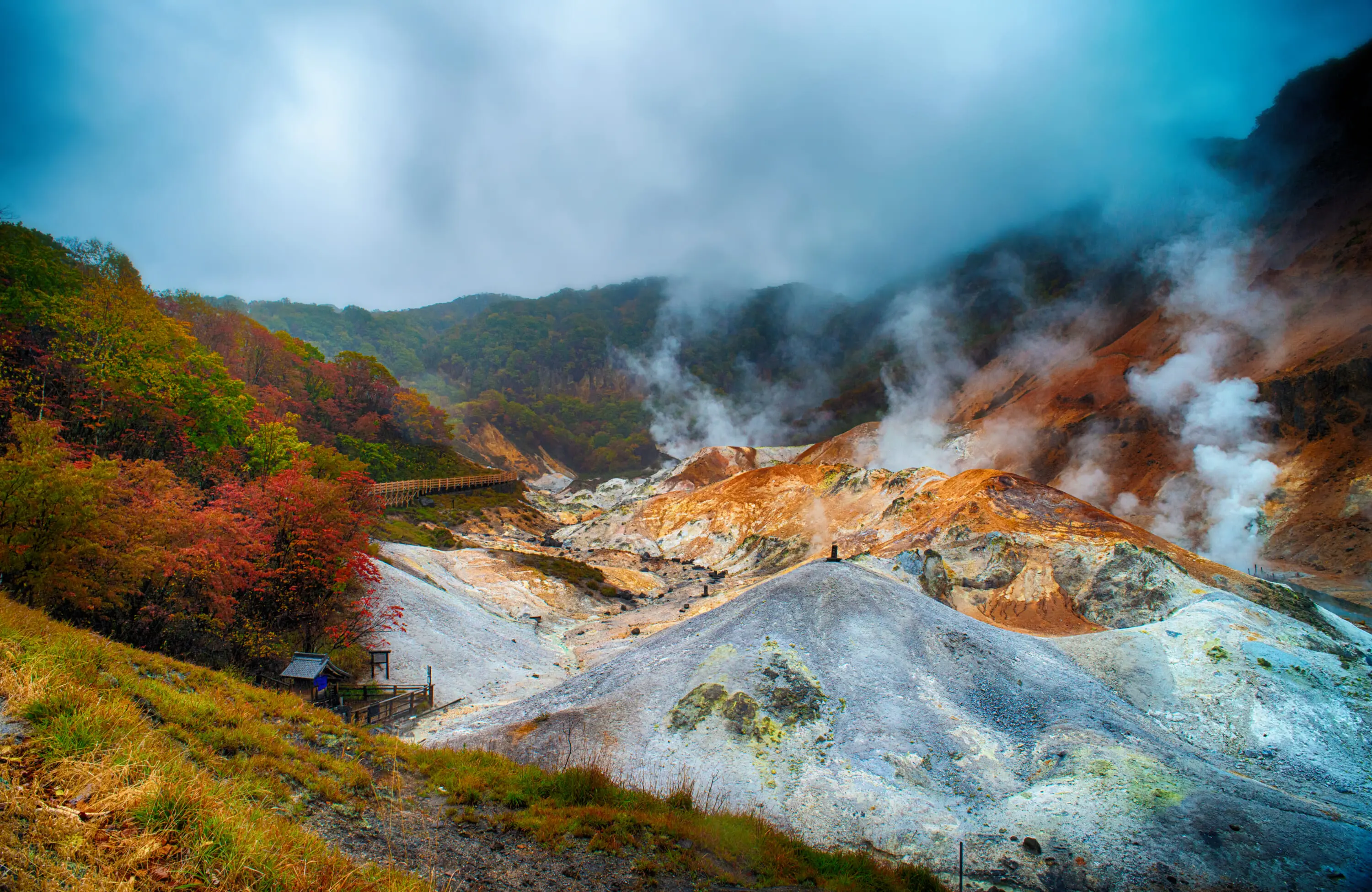 If you find yourself in Hokkaido, check out Noboribetsu Onsen for top-tier waters and fascinating festivals. In between a healing soak, you can hike around the mountainous region and visit Jigokudani (Hell Valley) to see steam billowing out from the barren crater valley. Noboribetsu has various events year-round, such as the Noboribetsu Onsenyu Matsuri (Noboribetsu Onsen Water Festival) during the winter and Jigoku no Tani no Oni Hanabi (fireworks of the demons from the valley of hell) in the summer and autumn.