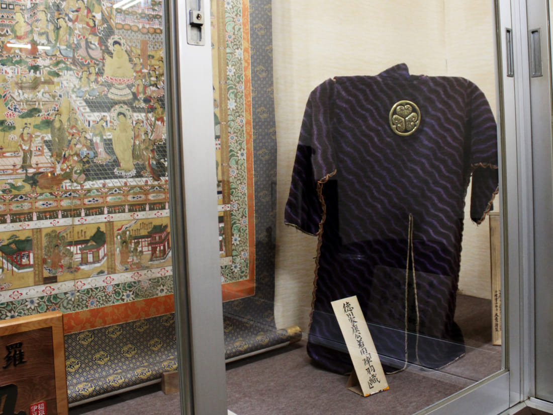 Behind a glass-walled cabinet lay a palanquin used to carry the shogun around the turn of the 19th century, its outrageously miniature size serving to remind how much a good diet has changed the dimensions of our species over the last 200 years. A giant hand-stitched scroll dominated one wall of the room, with one of Tokugawa Ieyasu’s war gowns erected on a stand underneath. The brocaded garment of purple silk was created with Dutch and Chinese materials – as was the fashion among higher classes in ancient Japan – and fixed with the golden hollyhock symbol that marked the Tokugawa clan.
