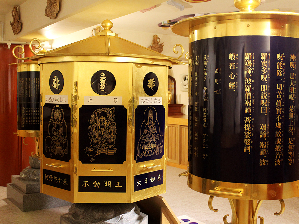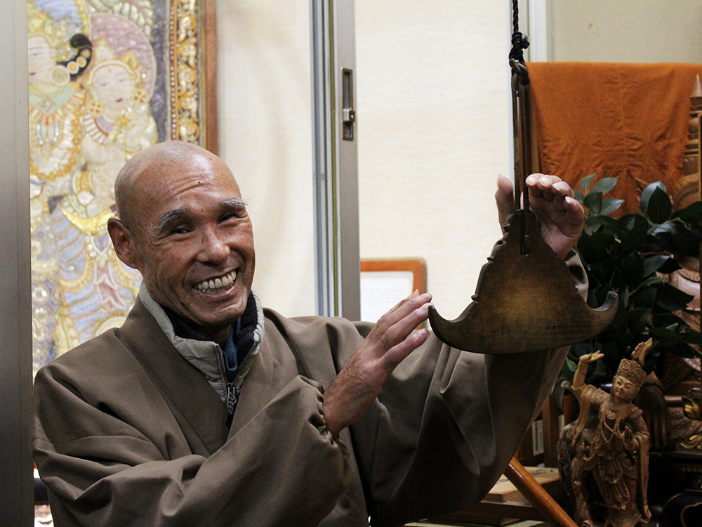 Though Muramatsu-san’s stories were coming to me indirectly via translation, I was gripped by his monologue, delivered at the front of the hall, while framed by a theatrical backdrop. Above his head, a tapestry of painted scrolls running the length of the hall depicted the delicate balance between war and intermittent periods of peace. Behind him rose an elaborate butsudan altar of hand-carved candelabras, embroidered wall hangings and deific statues shaped from burnished wood. This was his stage, and clearly, he was no stranger to it.