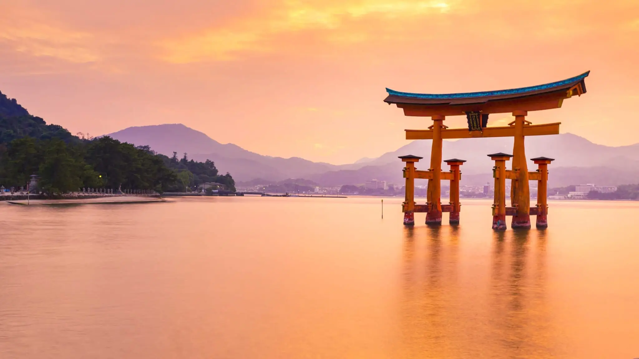 Today, the island is home to around 2,000 residents and a population of friendly, free-roaming deer that adds to its charm. In spring, cherry blossoms blanket the island in soft pink hues, framing the shrine in a picture-perfect scene. Summer sees the lively Kangen-sai festival, where traditional boats and melodies celebrate the island’s maritime heritage. During autumn, the island’s Momijidani Park becomes a fiery masterpiece, with maple trees painting the landscape in vivid reds and oranges. During winter, snow occasionally dusts the island, adding a serene beauty to the shrine and the slopes of Mount Misen rising behind it.